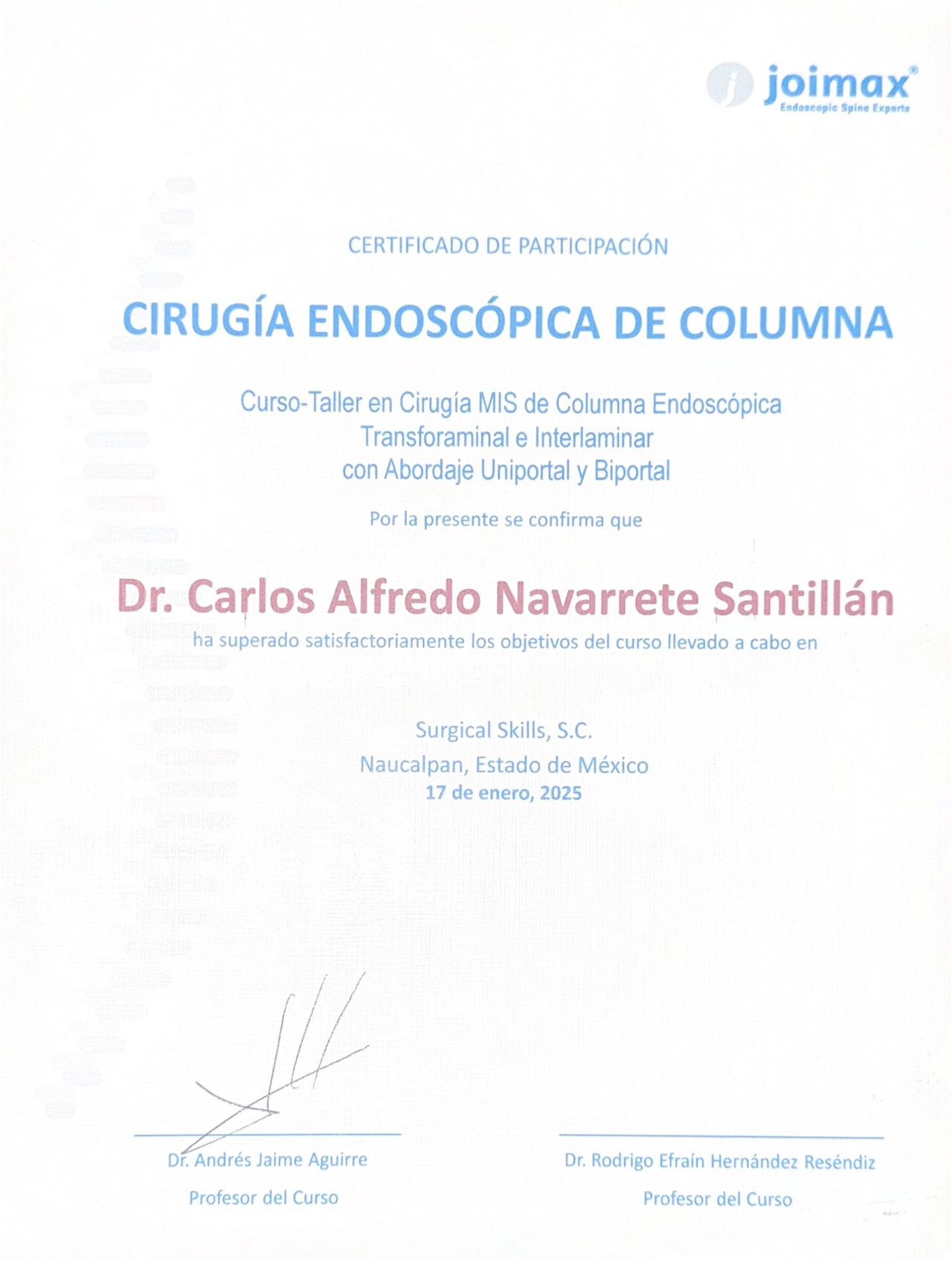 Soy el Dr. Carlos Navarrete, soy Ortopedista y cirujano de columna.