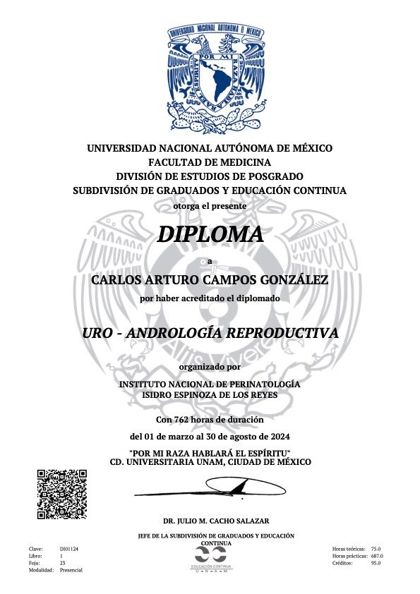 Recientemente realizcé un diplomado en Andrología.
