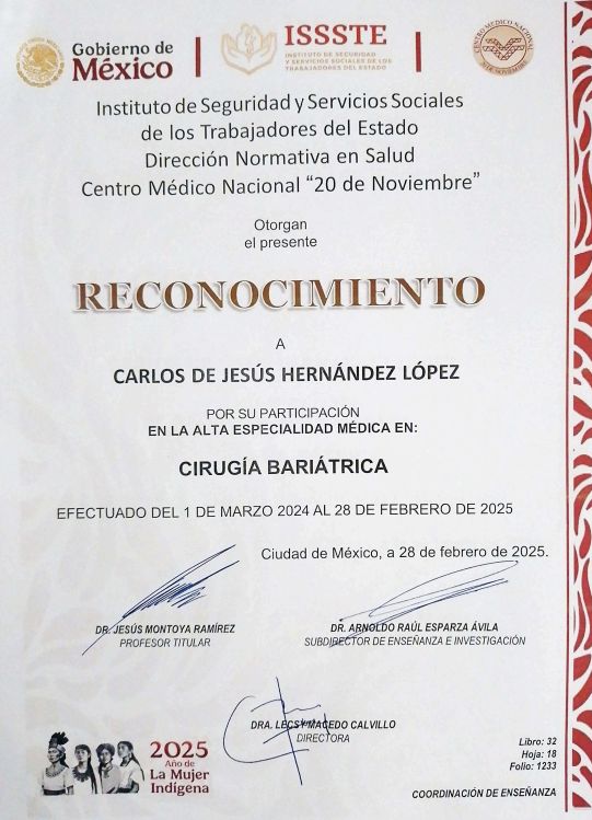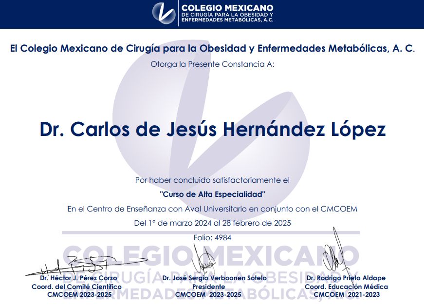 Soy cirujano, estoy certificado en dos especialidades quirúrgicas: Cirugía General y Cirugía Bariátrica y Metabólica.
