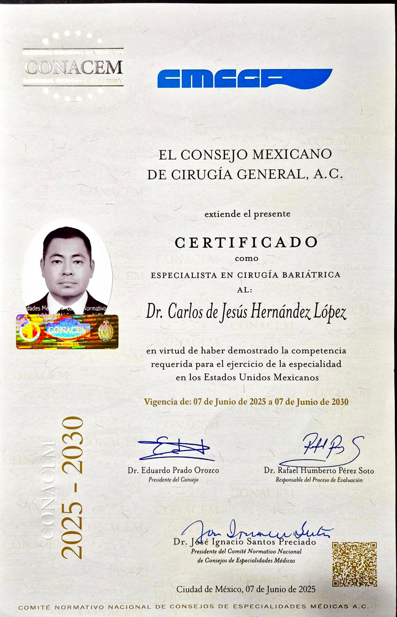 Soy cirujano, estoy certificado en dos especialidades quirúrgicas: Cirugía General y Cirugía Bariátrica y Metabólica.