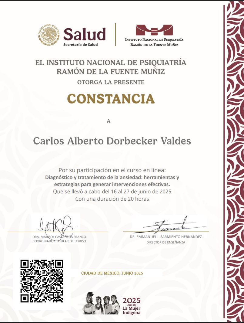 Soy Carlos Dorbecker Valdes, un psicólogo dedicado al bienestar emocional y mental de adolescentes, adultos y parejas. Mi formación y experiencia me capacitan para ofrecer apoyo especializado en una amplia gama de trastornos, que incluyen ansiedad, obsesivo-compulsivo, trastornos de la alimentación, trastornos del estado de ánimo, burnout y depresión.