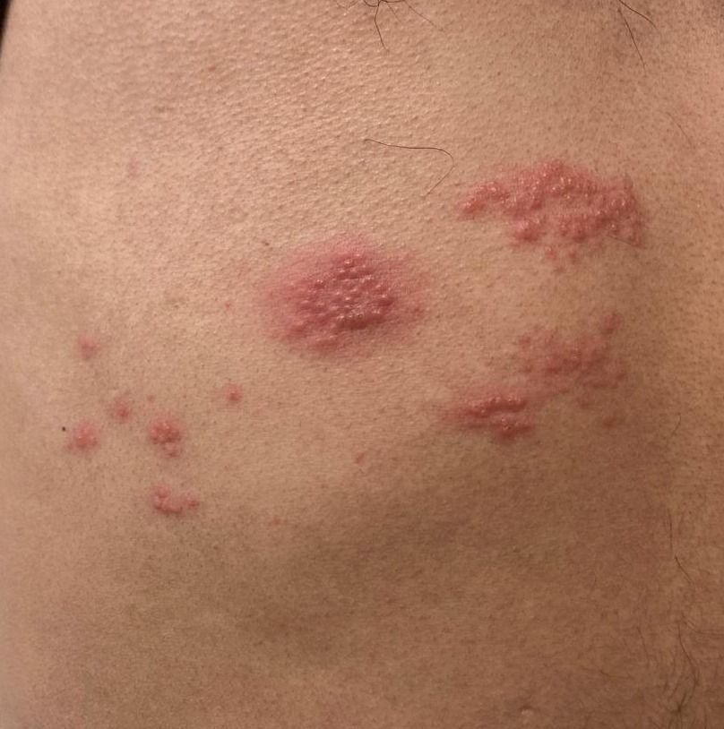 - Los síntomas generalmente inician con dolor a lo largo del dermatoma afectado, seguido de 2 o 3 días por una erupción vesicular clásica.