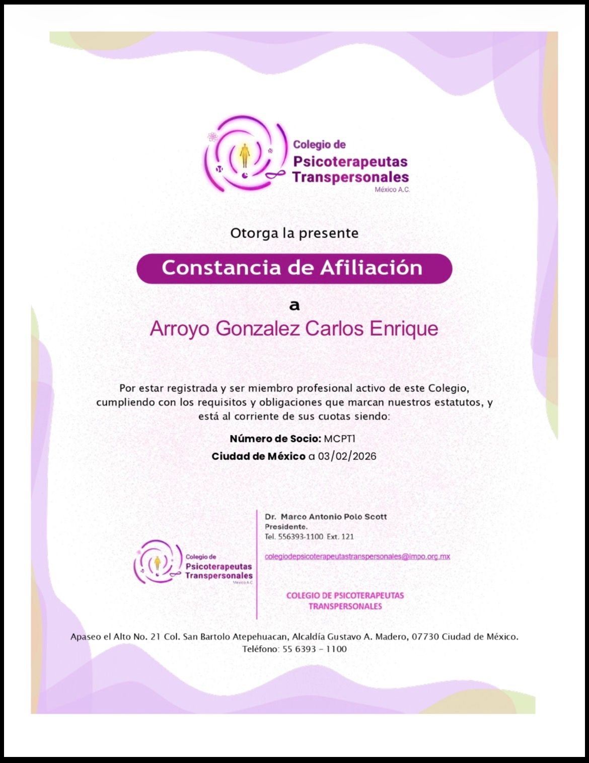 Mtro. Carlos Enrique Arroyo Gonzalez