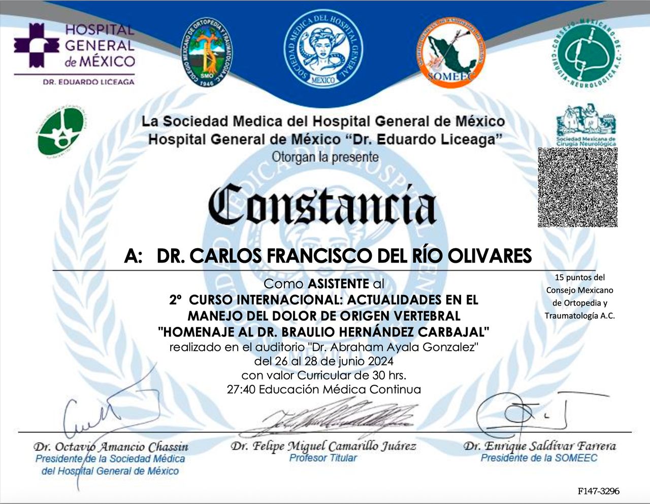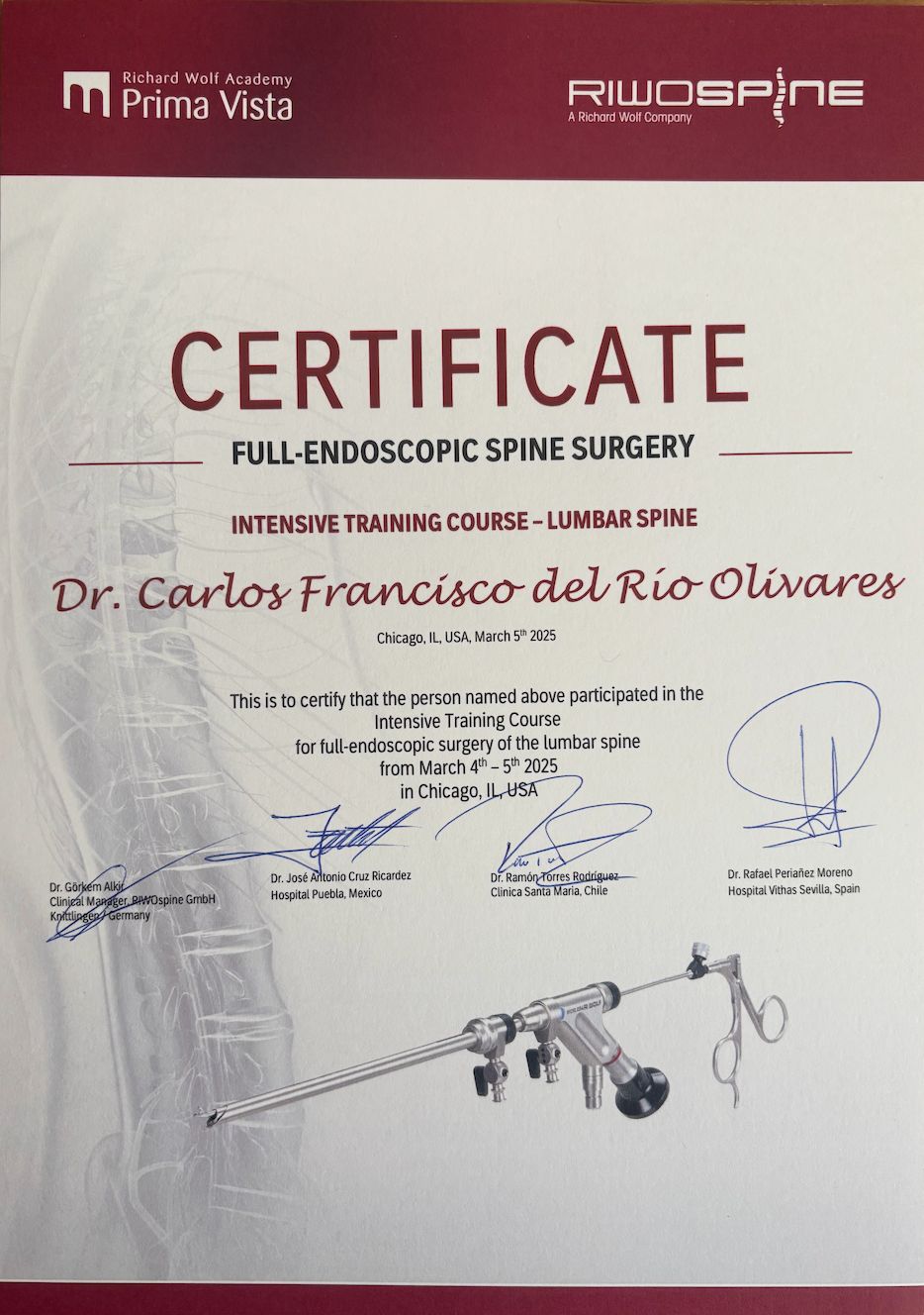 Me complace compartir que realizo cirugía de columna por endoscopía, una técnica mínimamente invasiva ideal para tratar hernias discales, estenosis lumbar y algunos casos de hernia torácica.