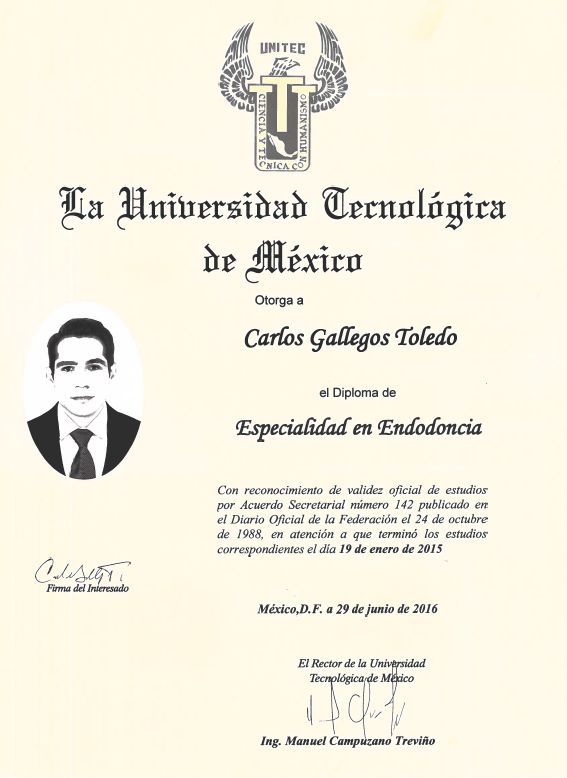 Excelente Dr. Muy buen trato, pero sobre todo excelente trabajo en sus endodoncias, me habían hecho otro Dr endodoncia y definitivamente el Dr Carlos Gallegos pero mucho el mejor, verdaderamente un gran trabajo