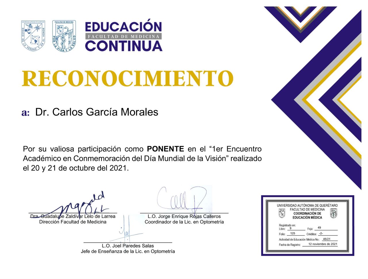 Soy el Dr. Carlos García Morales Cirujano oftalmólogo, Especialista en Estrabismo y Baja Visual. Me dedico con pasión al diagnóstico y tratamiento de casos de estrabismo en niños y adultos, así como a la implentación de ayudas visuales en pacientes con baja visual.