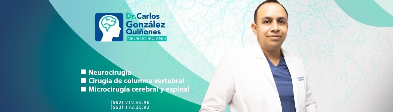 Hola, soy el Dr. Carlos González Quiñones, neurocirujano con 18 años de experiencia en Hermosillo. Me formé como Médico Cirujano en la UJED en 2007 y me especialicé en Neurocirugía en la Universidad de Guadalajara en 2014. Desde 2014 he trabajado en el IMSS y actualmente en el Centro Médico del Río, donde atiendo casos complejos como tumores cerebrales, aneurismas, hernias discales y cirugías de columna, incluyendo técnicas mínimamente invasivas para base de cráneo y columna vertebral.