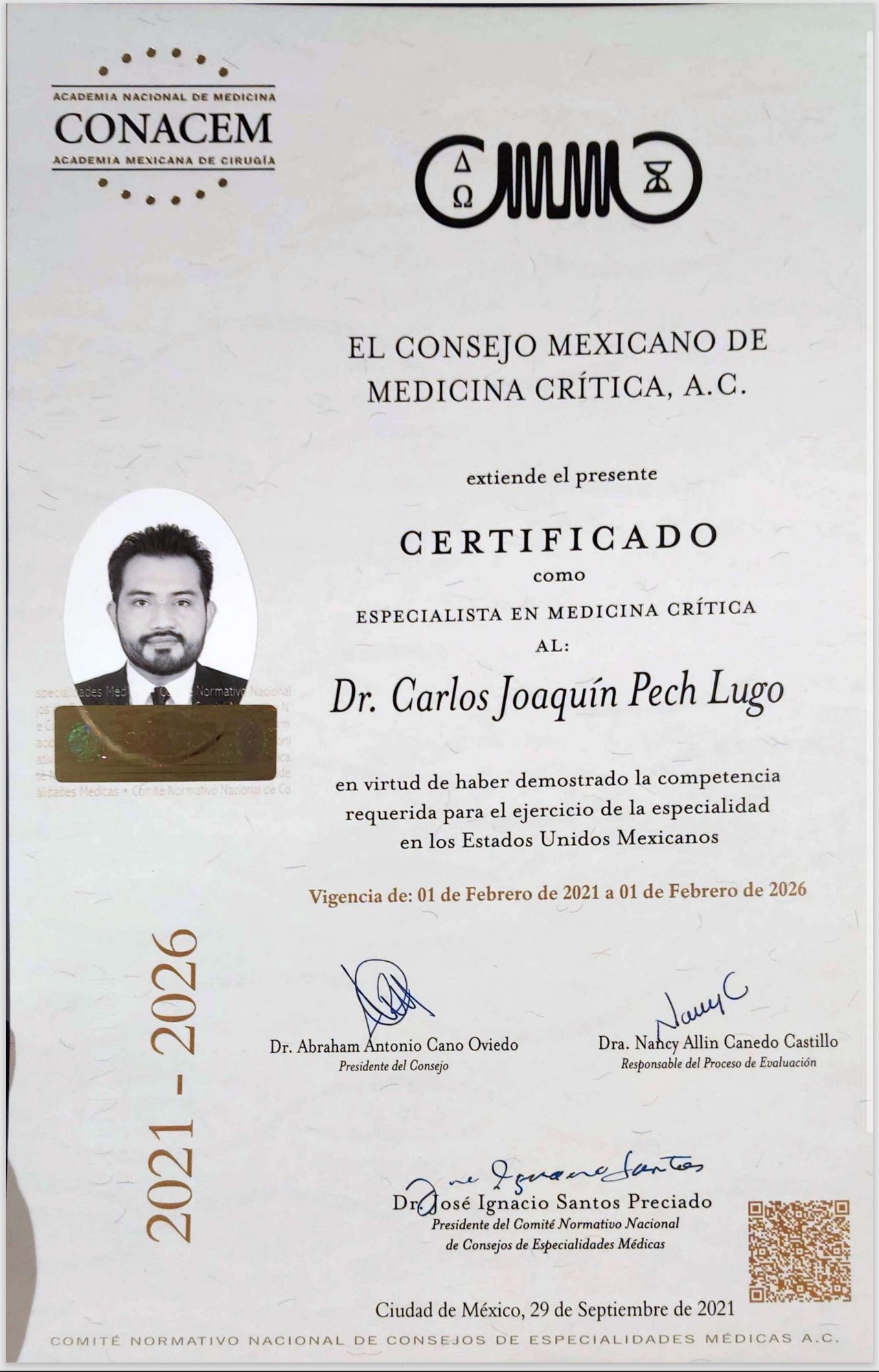 Especialista en Medicina Crítica y Terapia Intensiva