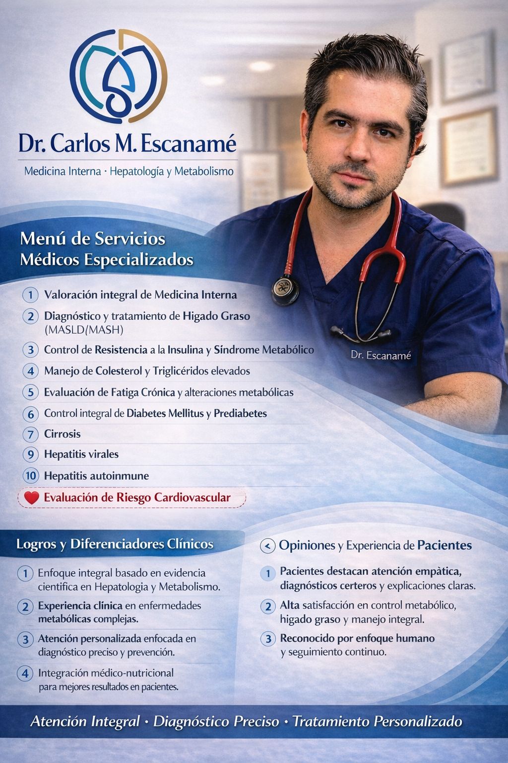 Cuento con formación en Hepatología Clínica por la Universidad Autónoma de Madrid (España), con enfoque en enfermedades hepáticas y metabólicas de alta prevalencia como el hígado graso (MASLD).