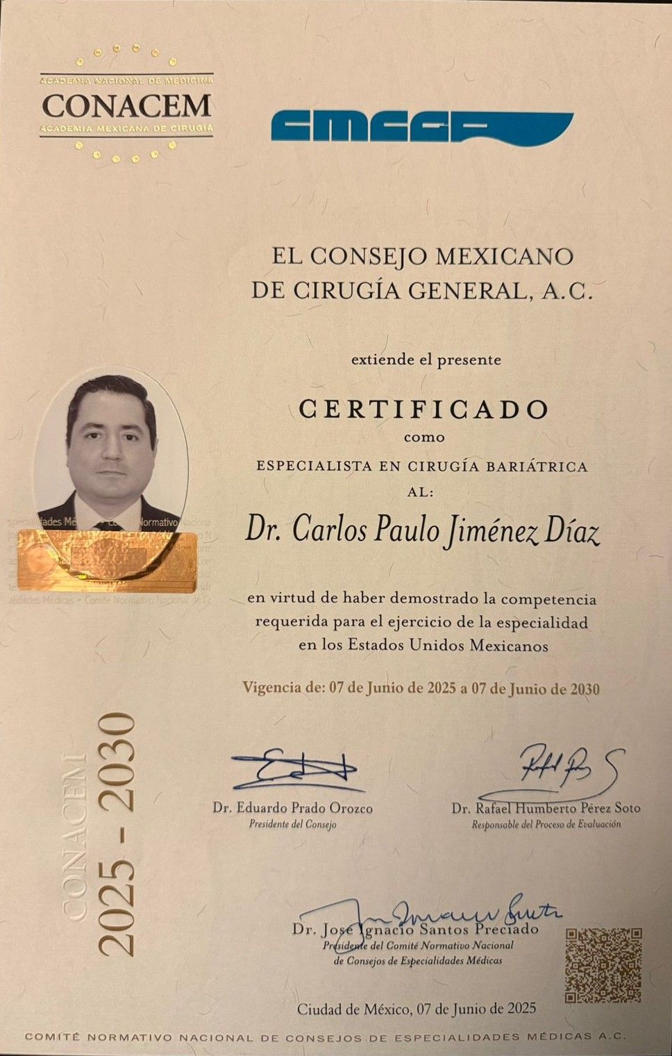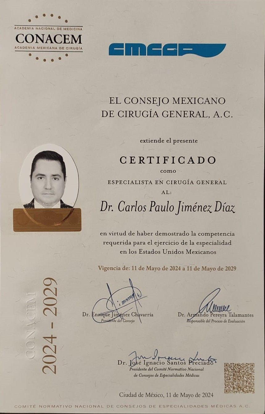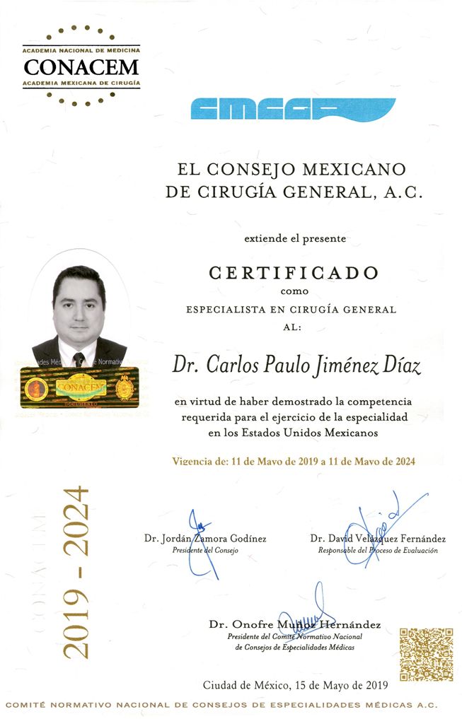 Cuento con doble certificación por el Consejo Mexicano de Cirugía General (CMCG) y soy miembro activo de: