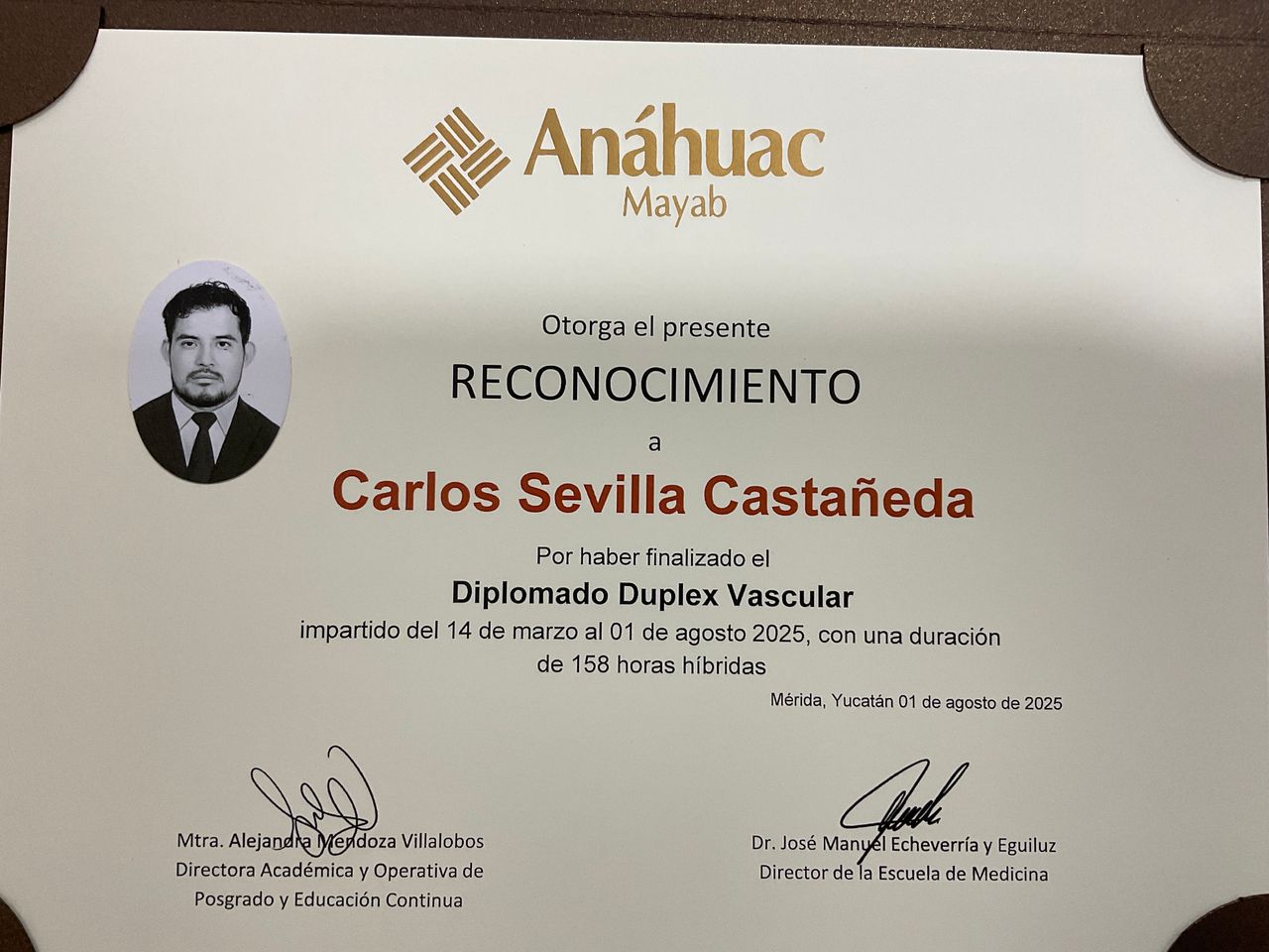Hola, soy Carlos Sevilla Castañeda, médico especialista en Angiología, Cirugía Vascular y Endovascular. Me gradué de la Universidad de Guadalajara, donde adquirí una sólida formación académica y práctica. Posteriormente, realicé mi especialización en el Hospital Regional “Valentín Gómez Farías” del ISSSTE, un centro reconocido por su excelencia en atención médica y formación de especialistas.