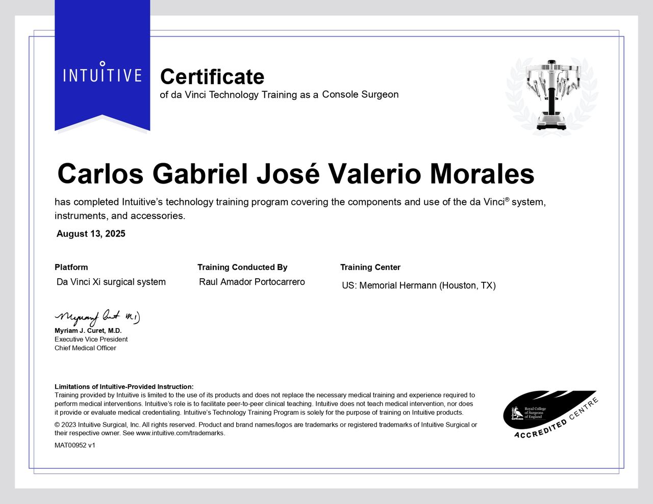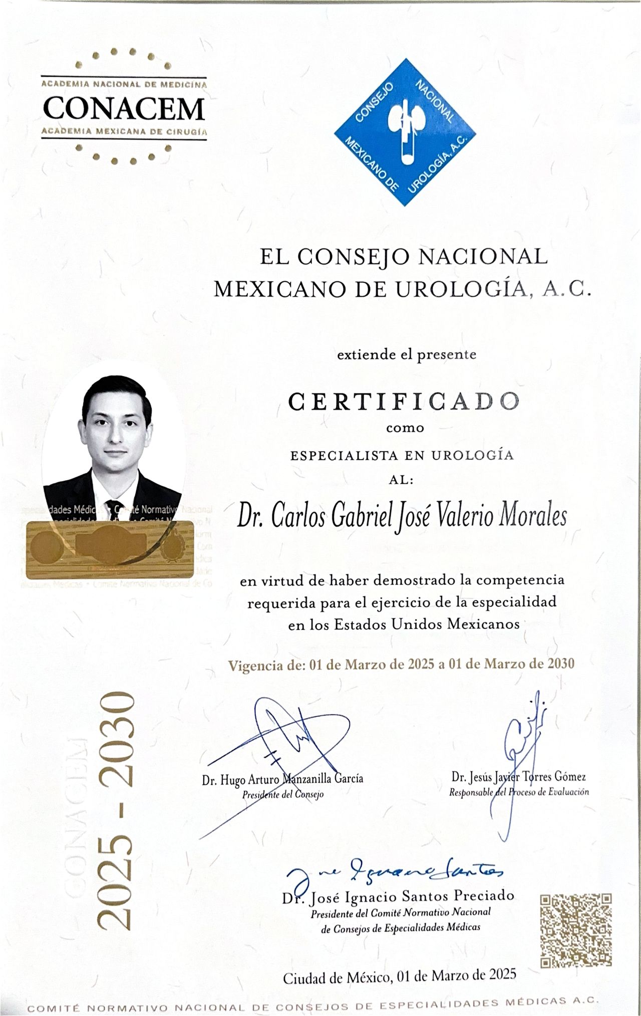Recomiendo ampliamente al Dr. Carlos Valerio Morales. Desde la primera consulta, nos impresionó su profesionalismo y la claridad con la que abordó el caso de mi papá. La cirugía fue un éxito y el seguimiento postoperatorio ha sido sumamente dedicado. Encontrar a un médico que combine una alta especialización técnica con un trato tan humano y empático hace toda la diferencia en procesos de salud complejos.
