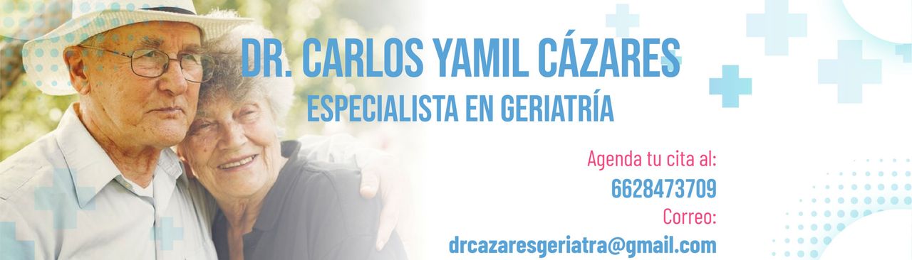 Soy el Doctor Carlos Yamil Cázares egresado de la Licenciatura de Medicina General de la Universidad de Sonora y egresado de la Especialidad de Geriatría por la Universidad de Guadalajara. Me encuentro Certificado por el Consejo Mexicano de Geriatría A.C.