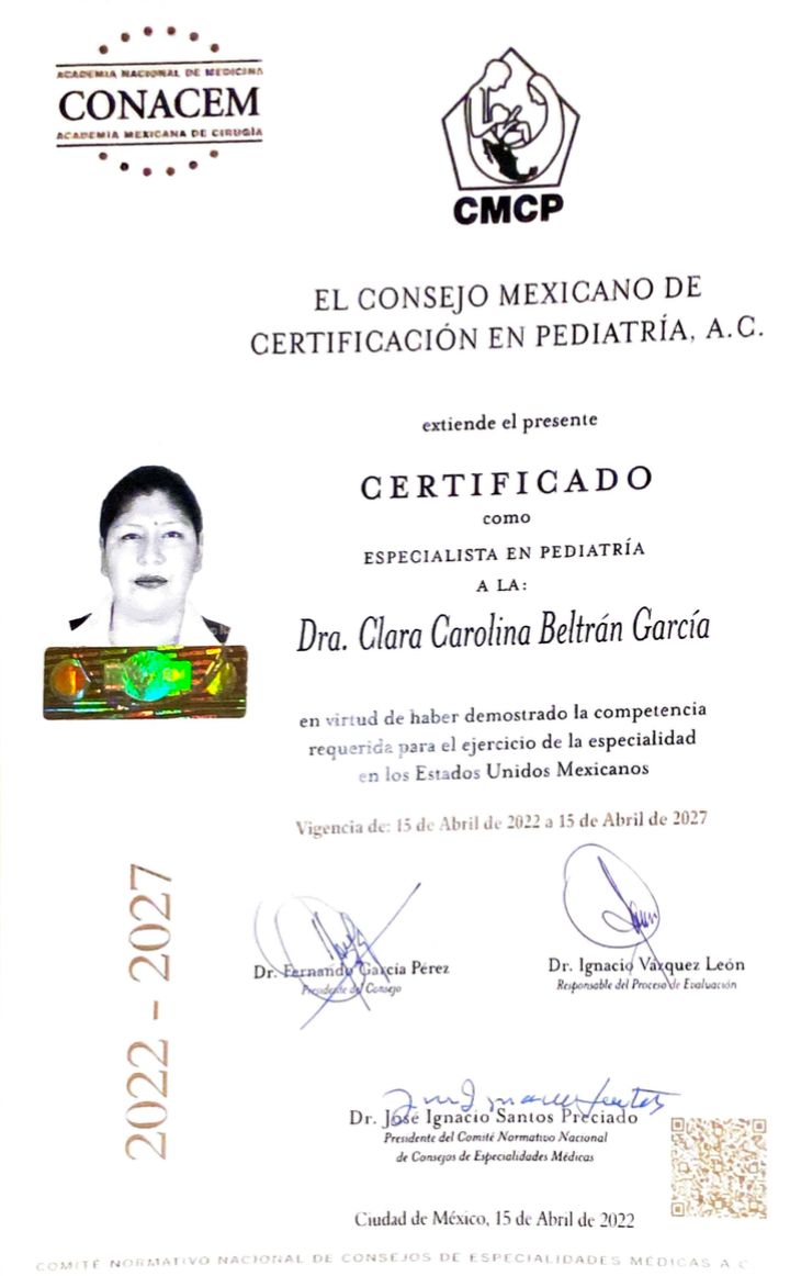 Me gradué como Médico Cirujano en la Universidad Nacional Autónoma de México, después continué mi residencia en el Instituto Nacional de Pediatría y posteriormente Medicina Crítica Pediátrica en el mismo lugar.