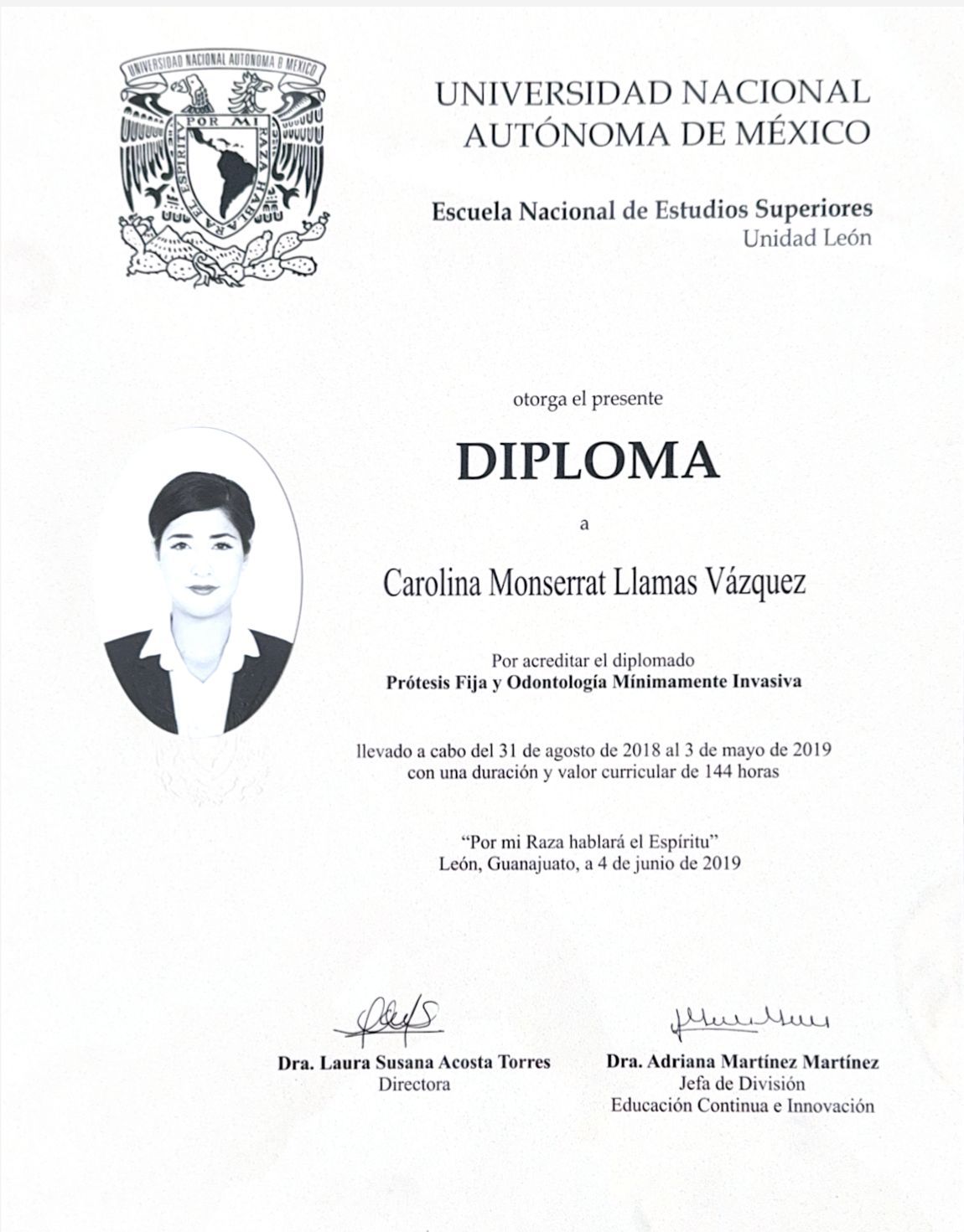 Odontóloga experta en Prótesis fíja y Placas Totales, cuenta con amplia experiencia en Odontología Estética y Restauradora. Su compromiso es ofrecerte atención personalizada para lograr sonrisas funcionales, armónicas y naturales con materiales de alta calidad.