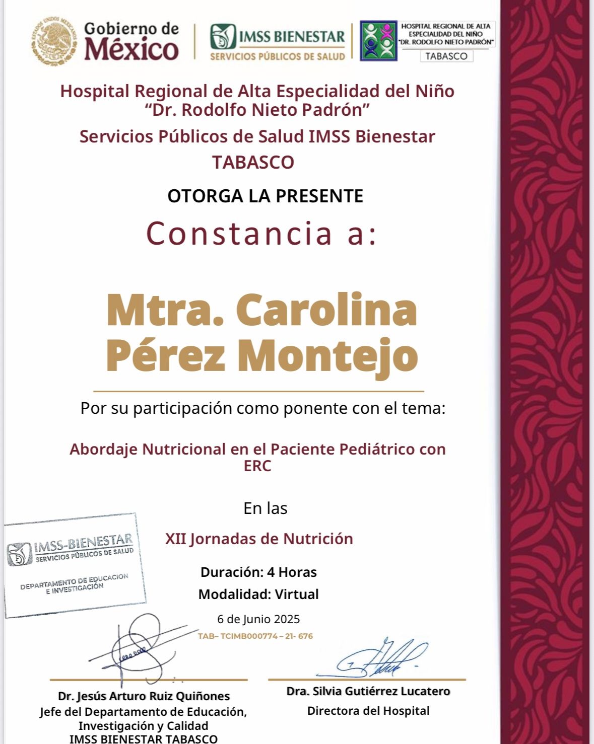 Mtra. Carolina Perez Montejo