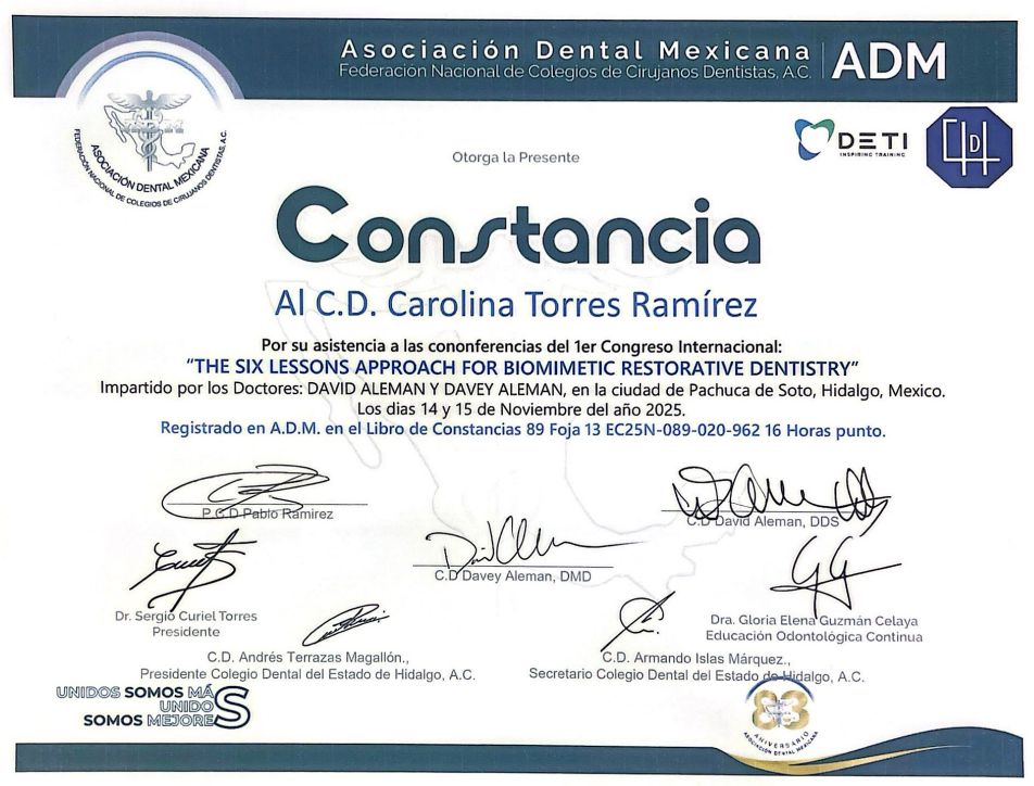 Soy la Dra. Carolina Torres Ramírez, odontóloga con formación en la Universidad Latinoamericana y pasión por la odontología integral. Me dedico con cariño y profesionalismo a cuidar la salud bucal de niños, jóvenes y adultos, ofreciendo desde tratamientos preventivos hasta atención en urgencias; siempre con un trato empático y cercano.