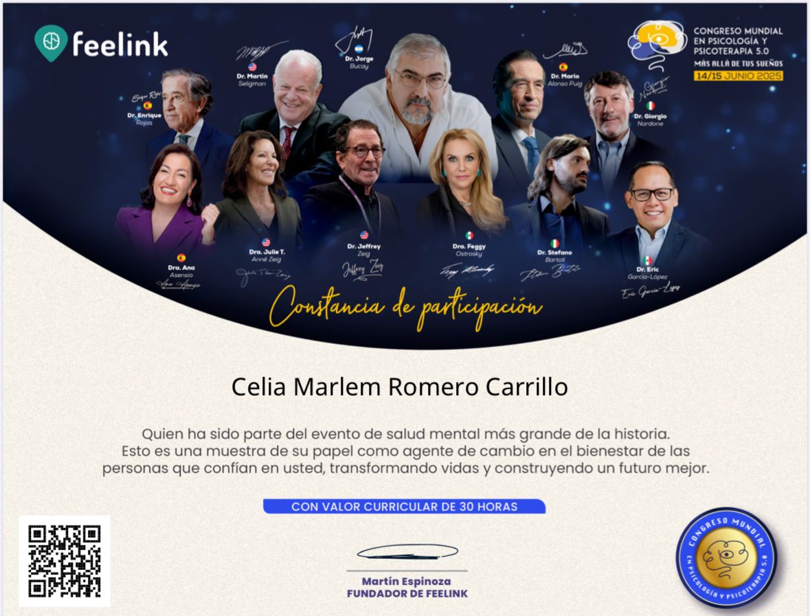 Hola, soy Marlem, psicóloga con más de 25 años de experiencia en desarrollo humano y bienestar integral. Desde 1999, he acompañado a personas en su crecimiento emocional, físico, mental y espiritual. Me gradué en la UDLAP y me especialicé en Sexología y Terapia de Pareja. Además, me formé en Psicoterapia Humanista, integrando enfoques como Gestalt, Psicocorporal, Transpersonal, Cognitivo-Conductual, Mindfulness y Coaching de Dinero y Abundancia.