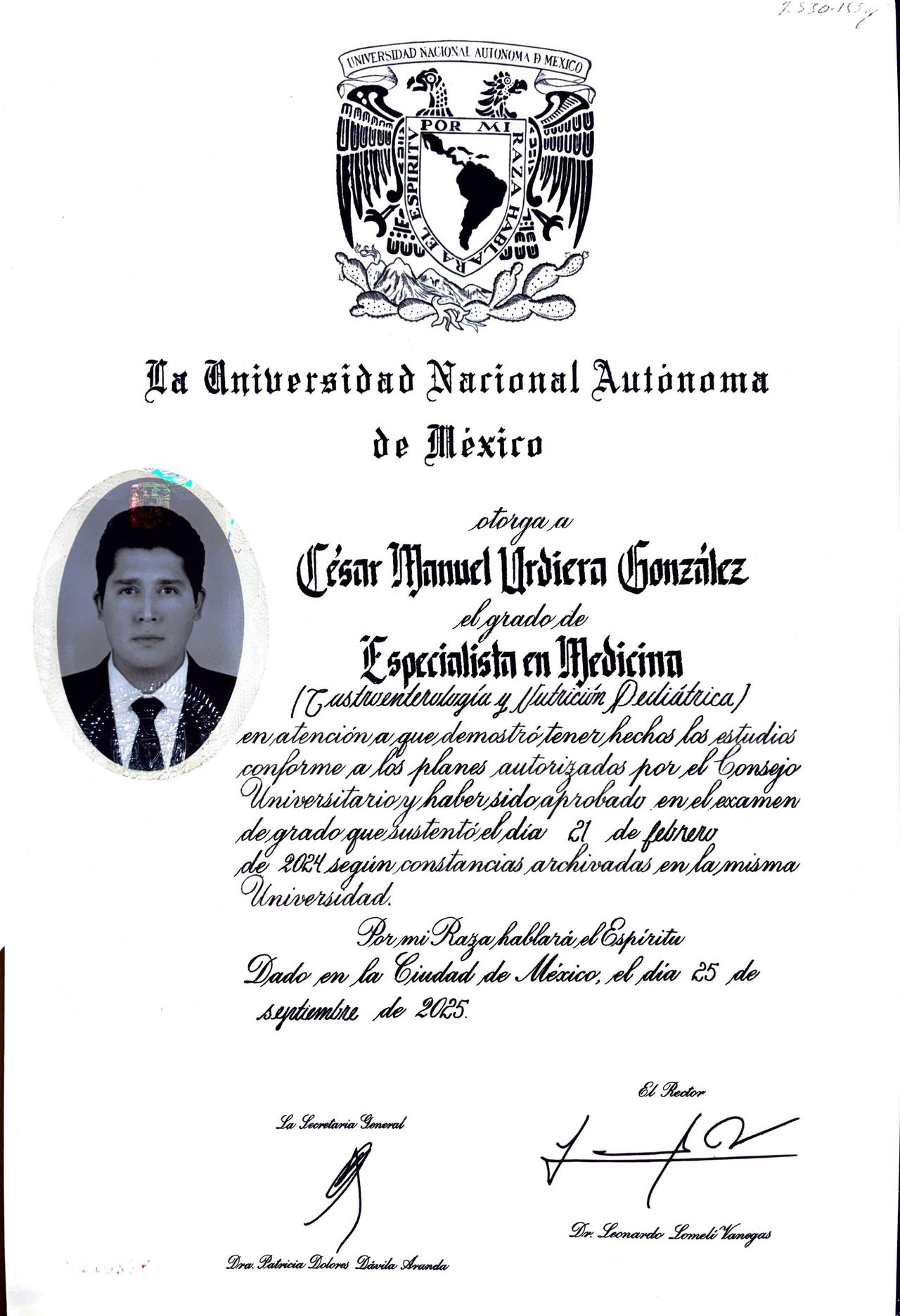 Subespecialista en Gastroenterología pediátrica , también en el mismo Hospital de pediatría del Centro Médico Nacional Siglo XXI