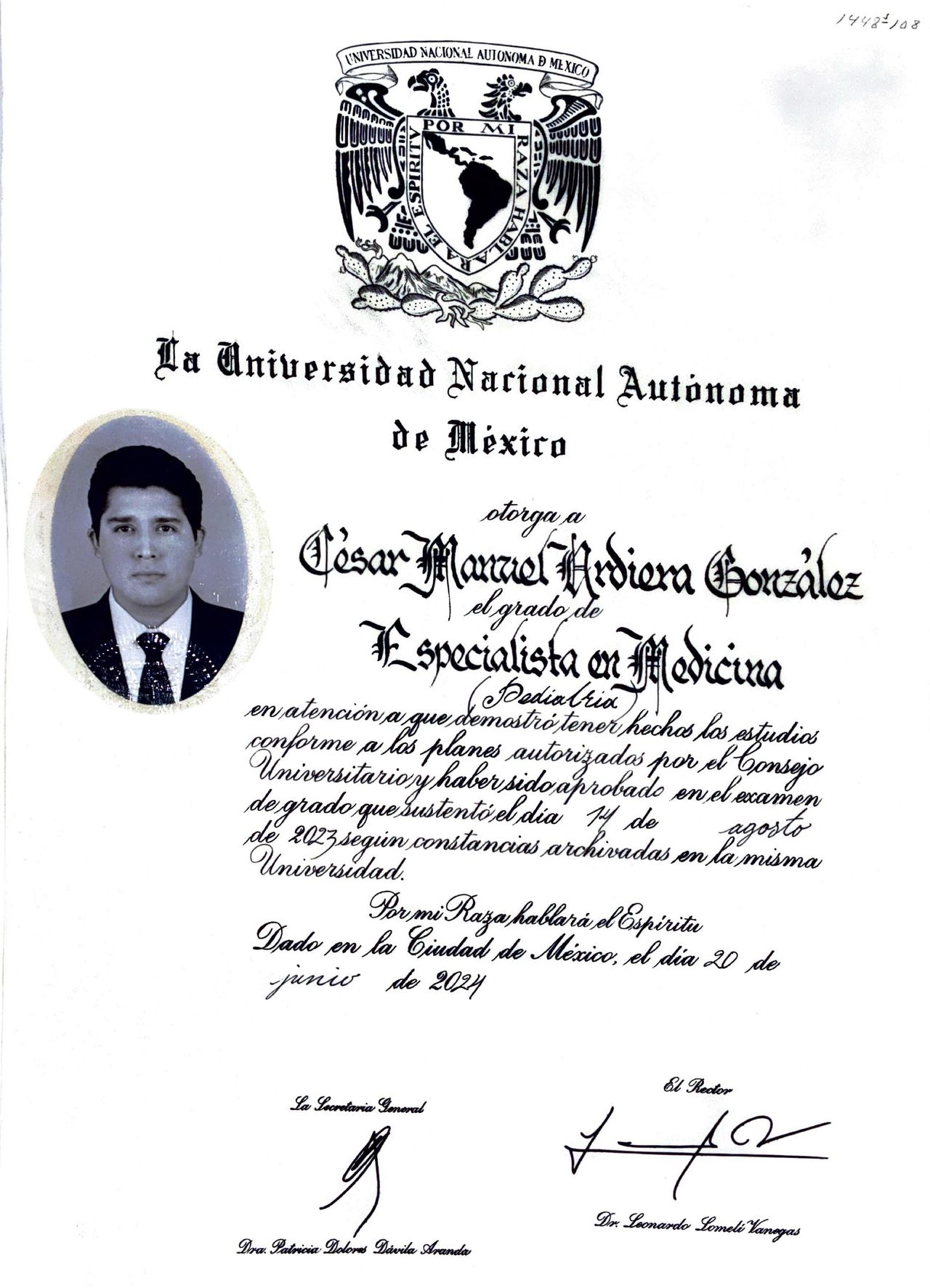Especialista en Pediatría Hospital de pediatría del Centro Médico Nacional Siglo XXI en del Instituto Mexicano del Seguro Social