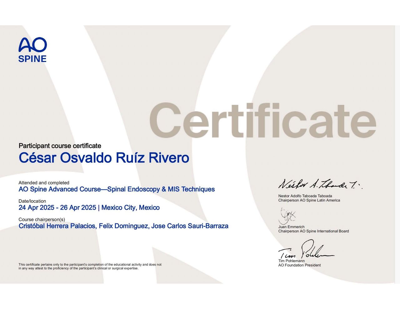 Con el Dr. César Ruiz, Traumatólogo y Ortopedista especializado en Cirugía de Columna Vertebral, recibirás una atención personalizada para diagnosticar y tratar tu dolor.