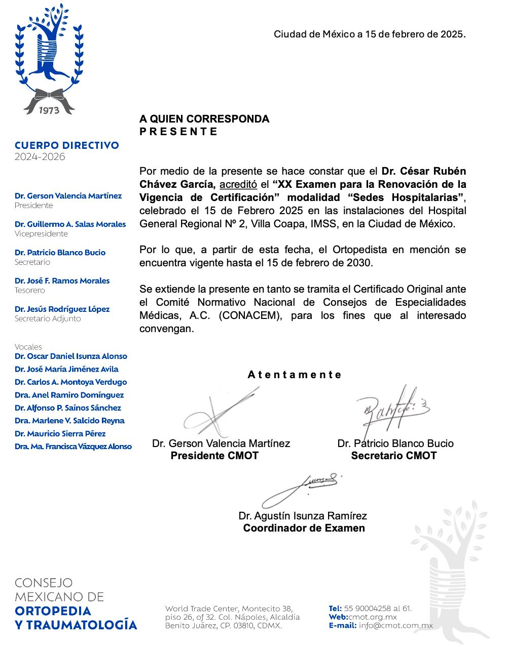• Hospital Ángeles Acoxpa - Consultorio 230 • Primera visita Ortopedia •