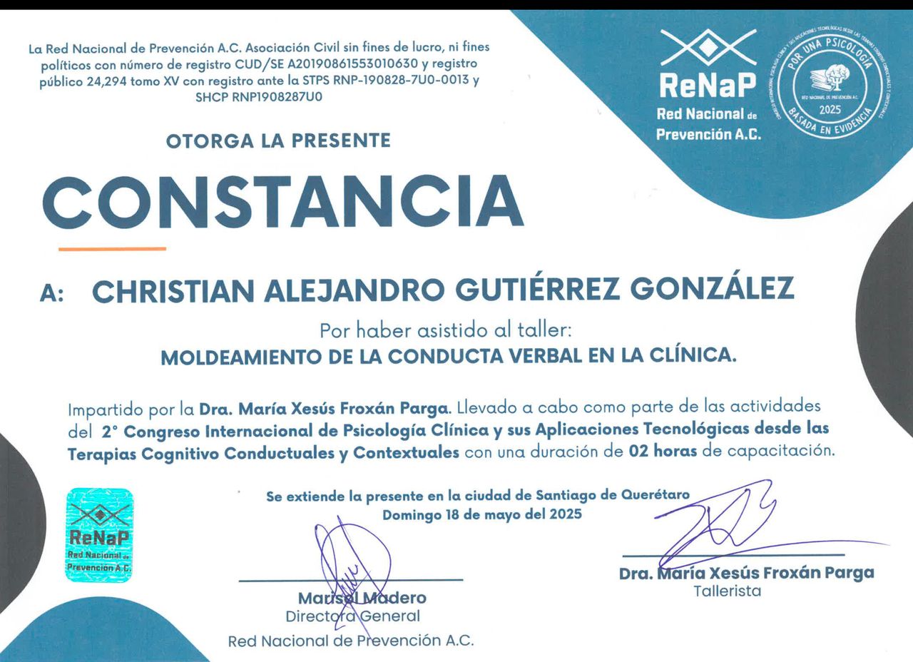 Es por ello, que durante los últimos 8 años, me he especializado en atender casos bajo los modelos de Psicoterapia Analítico Funcional (FAP) y la Terapia de Aceptación y Compromiso (ACT), relacionados con:
