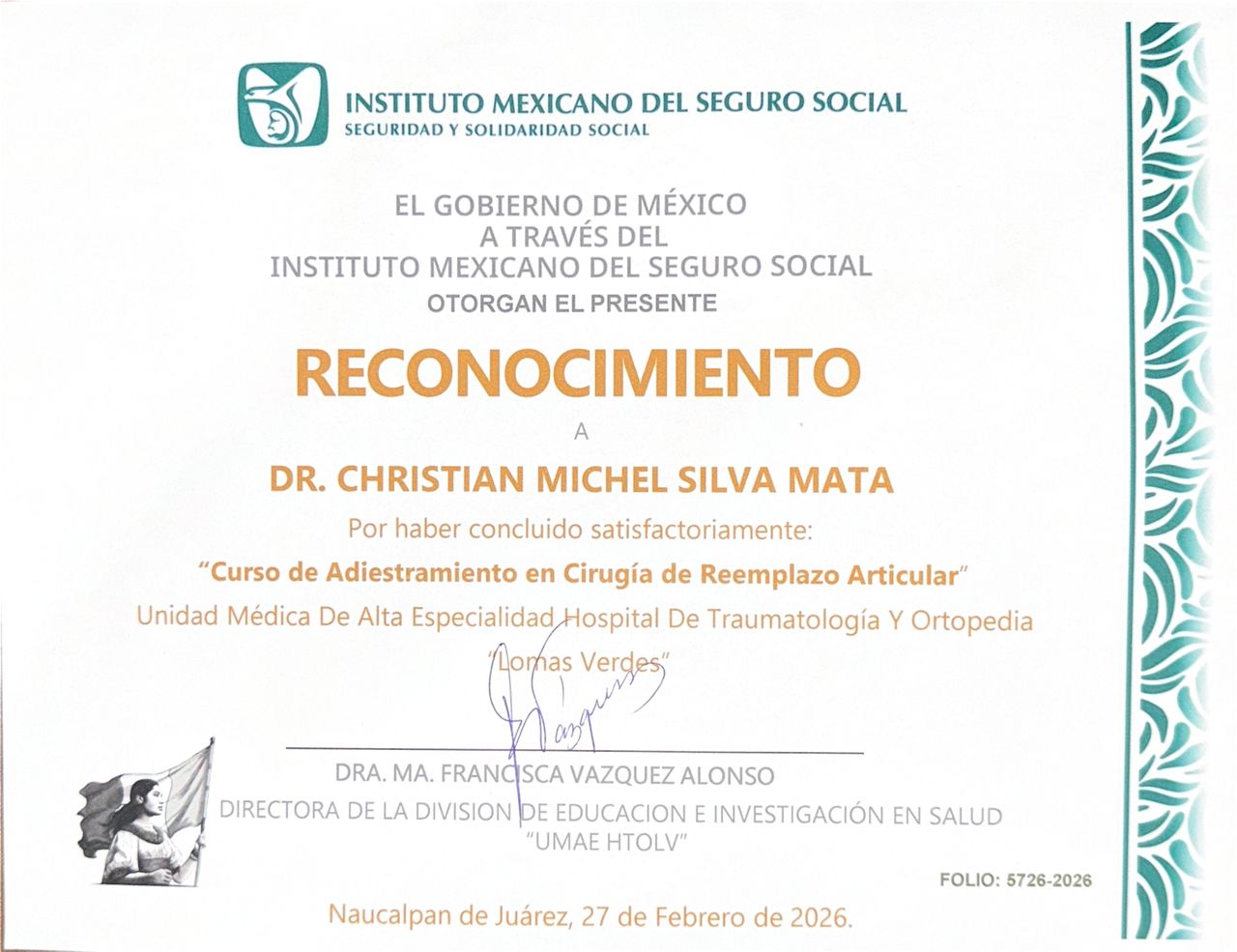 Soy médico egresado de la Facultad de Medicina de la Universidad Nacional Autónoma de México (UNAM). Posteriormente, realicé la especialidad en Traumatología y Ortopedia en la Unidad Médica de Alta Especialidad, Hospital de Traumatología y Ortopedia Lomas Verdes, donde adquirí una sólida formación en el diagnóstico y tratamiento integral de las enfermedades del sistema músculo-esquelético, y posteriormente realicé el Alta Especialidad en Reemplazo Articular.