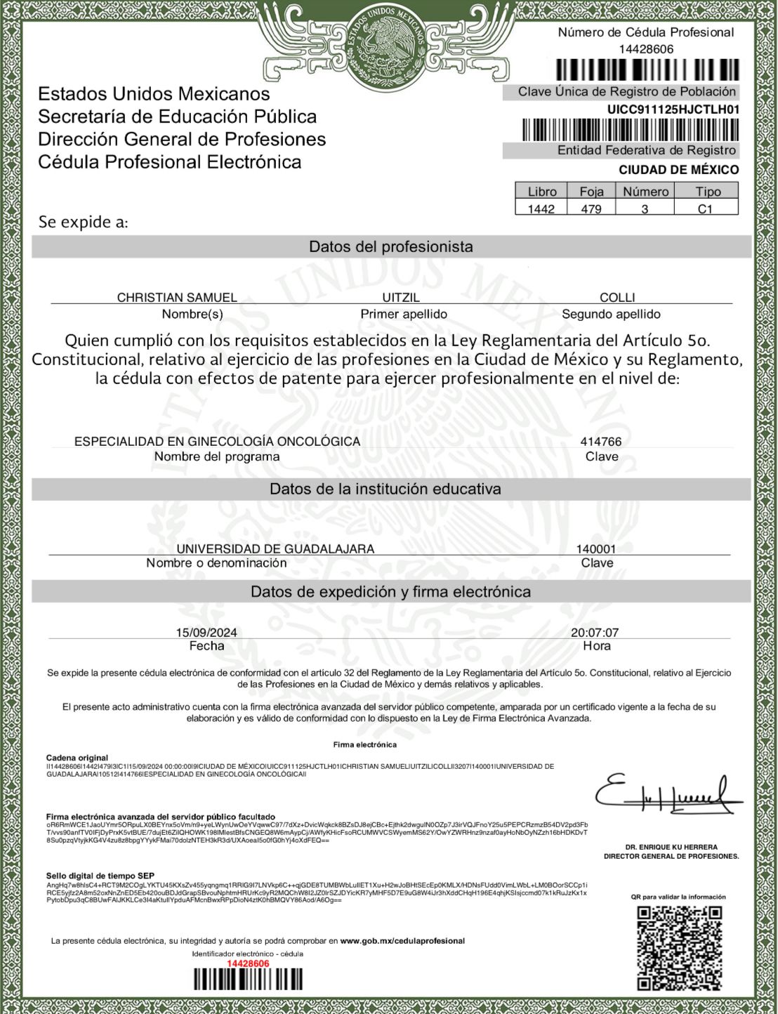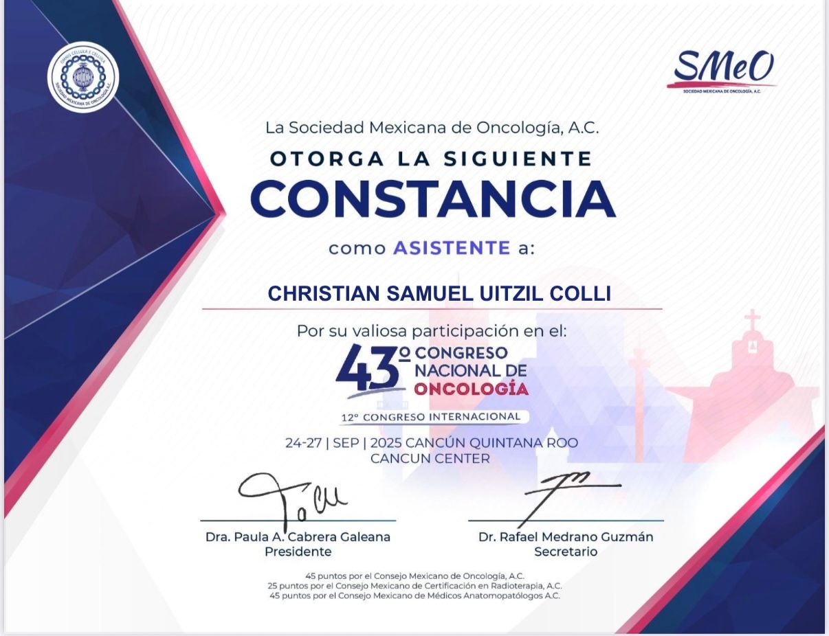 Hola que tal !!! Soy el Dr Christian Samuel Uitzil Colli, especialista en Ginecología y obstetricia, y sub especialista en Oncología ginecológica que se encarga del tratamiento diagnostico y prevención del cáncer en la mujer ¡¡. Soy originario de Arandas Jalisco. Realicé mi preparación en Guadalajara Jalisco por parte de la Universidad de Guadalajara en el Centro Universitario Ciencias de la Salud y en el Hospital Centro Medico Nacional de Occidente por parte del IMSS. Siéntanse seguros y con toda la confianza de que tendran la atención más cordial, y de calidad ¡¡