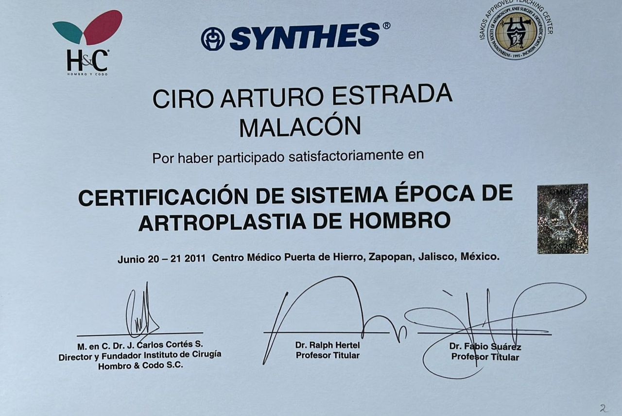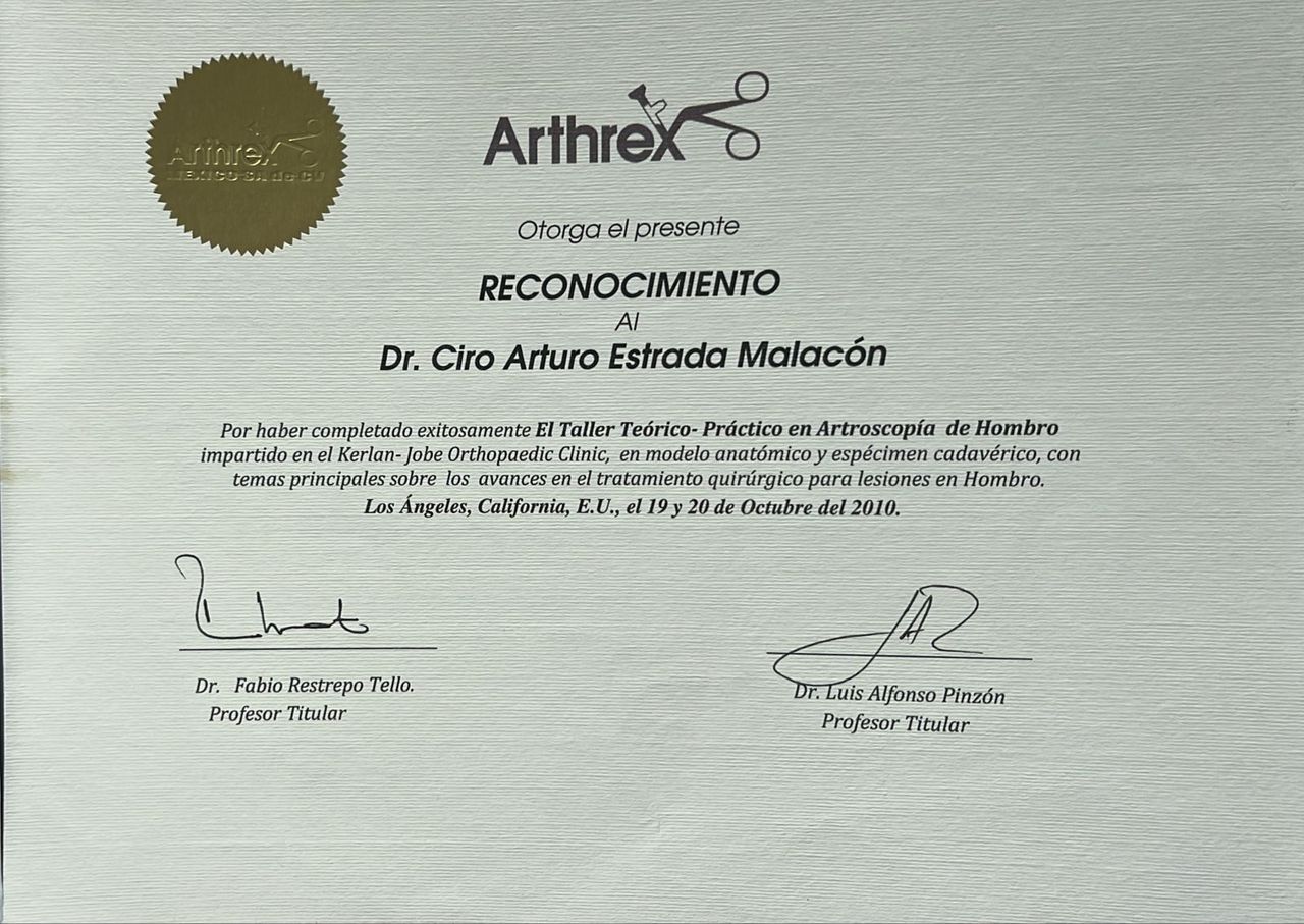 El Dr. Ciro Arturo Estrada Malacón es médico especialista en Ortopedia y Traumatología, con amplia experiencia en el diagnóstico y tratamiento quirúrgico de lesiones del sistema musculoesquelético.