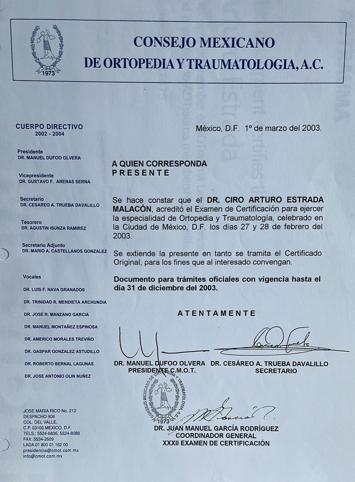 • CENTRO MEDICO TOLUCA • Visitas sucesivas Ortopedia •