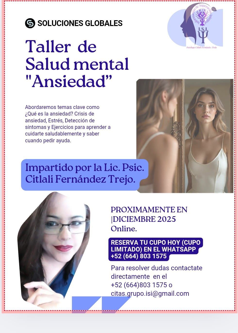 Este taller te ayudara a trabajar el estrés cotidiano, tu estado emocional, la ansiedad, estilo de vida que tienes....