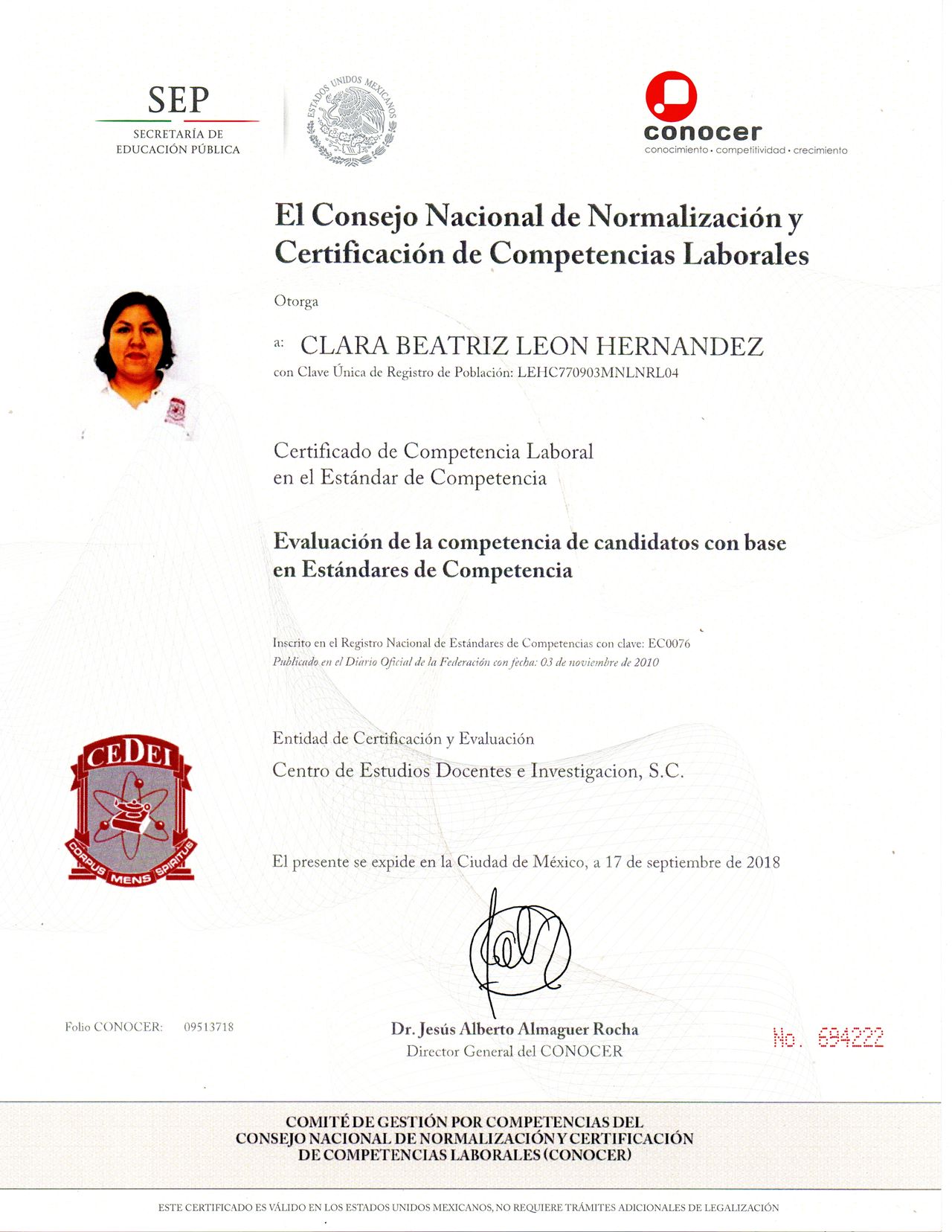 No. de cédula: 4392920