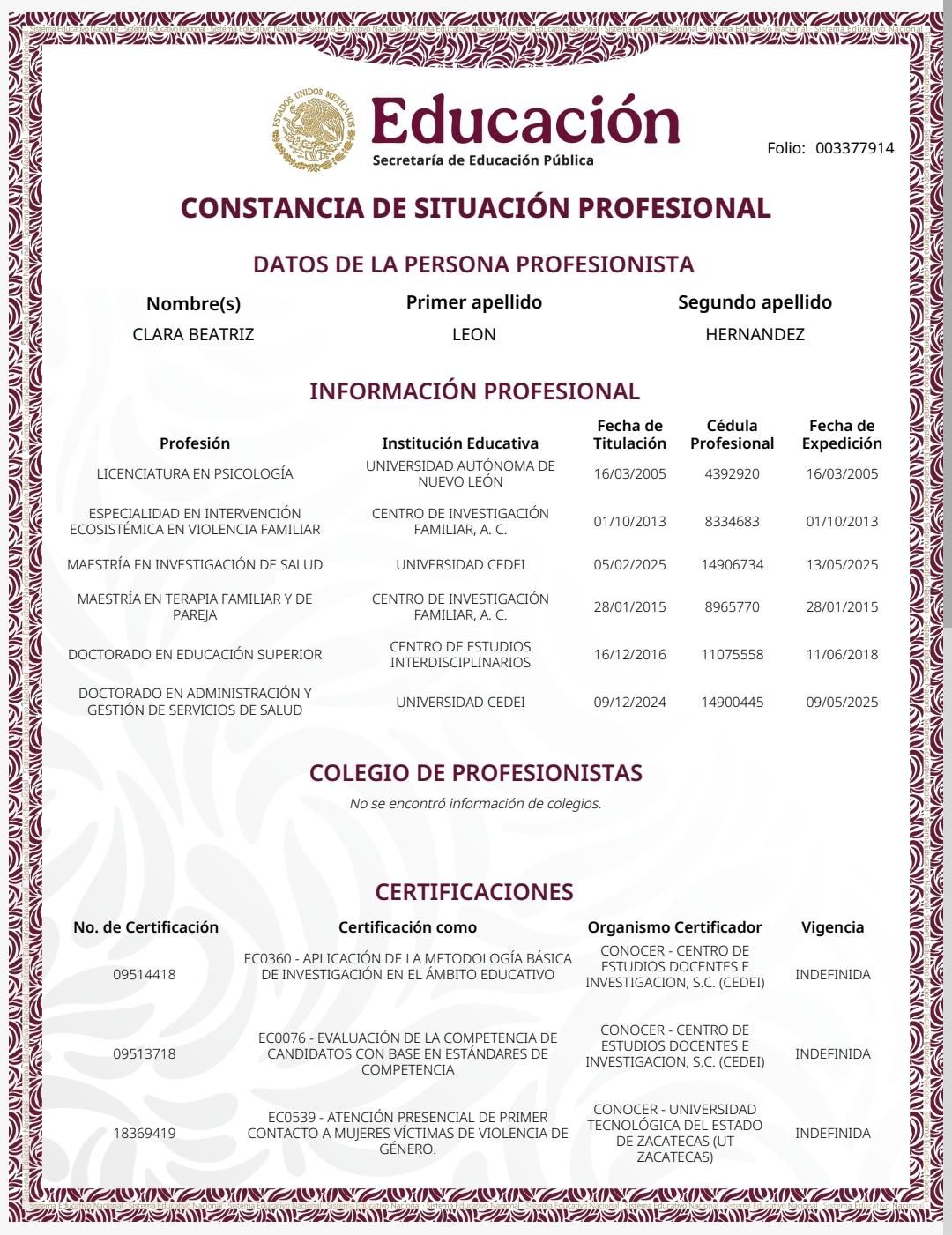 Soy psicóloga con más de 20 años de experiencia en el área clínica, institucional y académica. Me especializo en la atención de problemáticas emocionales, familiares y de salud mental, ofreciendo un espacio profesional, ético y confidencial.