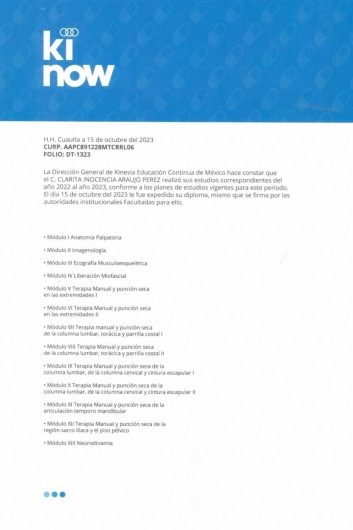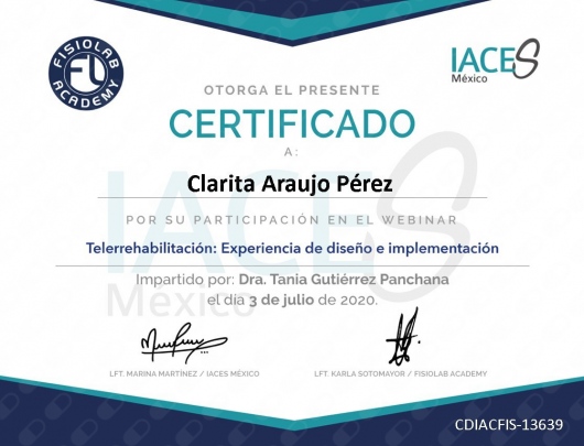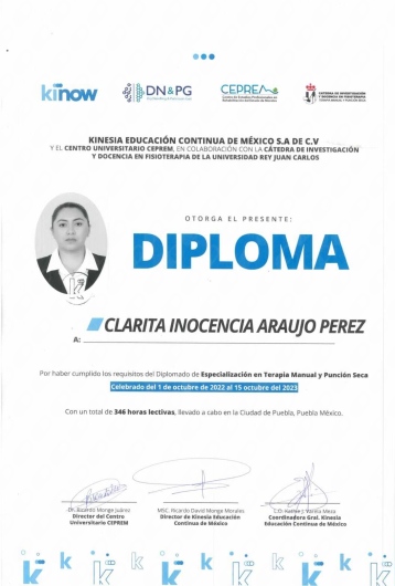 Con una amplia formación contínua, producto de cursos, talleres, congresos, diplomados, workshops y ejercer como docente en campo clínico, a distancia, presencial así como la dirección de programa educativo de Licenciatura en terapia.