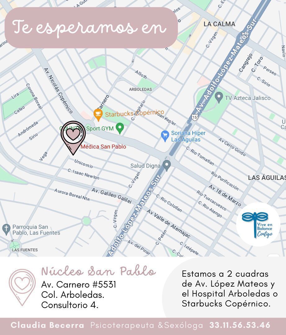 Dirección: Calle Carnero 5531 Col Arboledas Consultorio 4