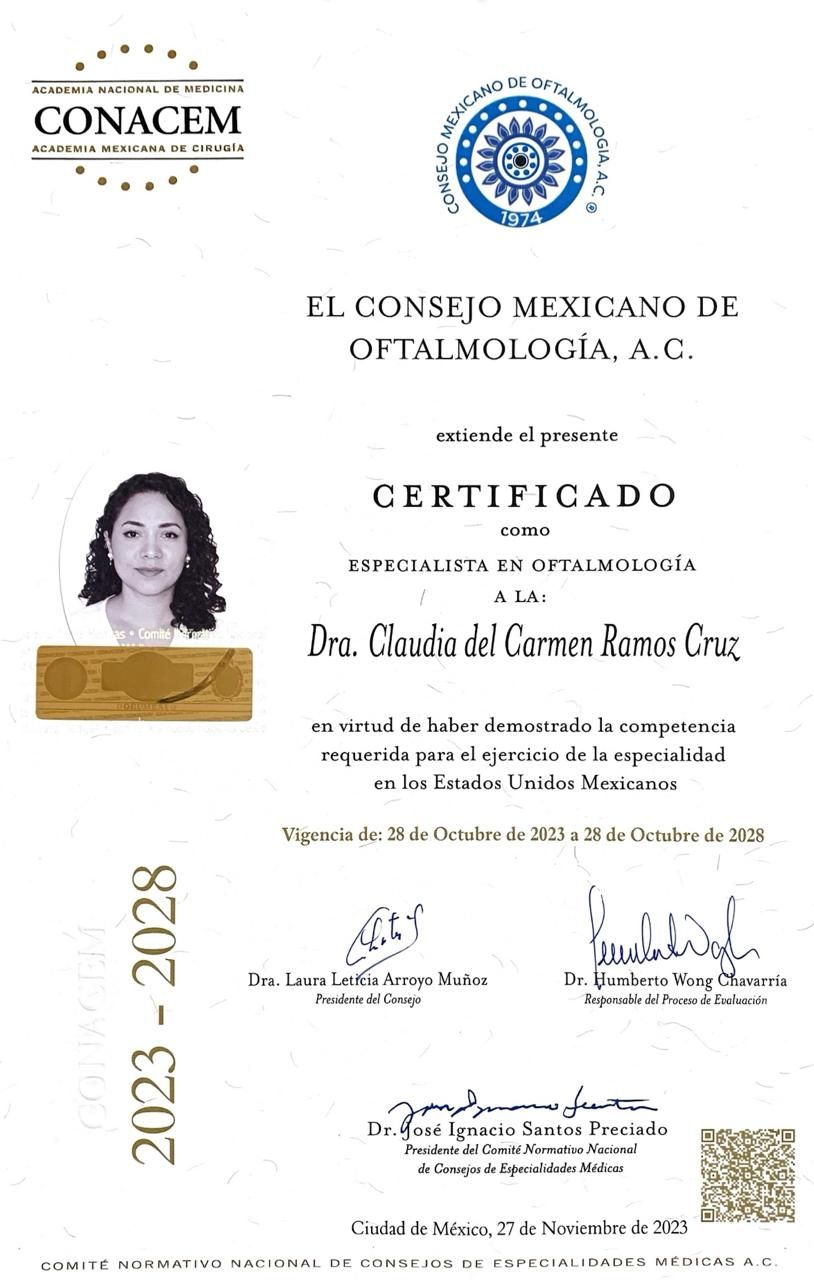 Actualmente certificada por el Consejo Mexicano de Oftalmología #5001