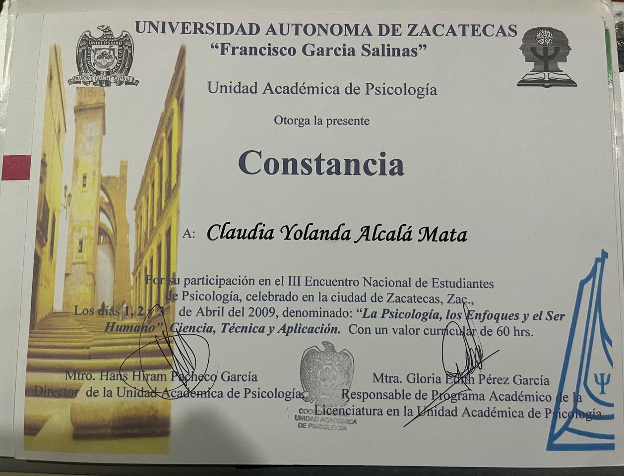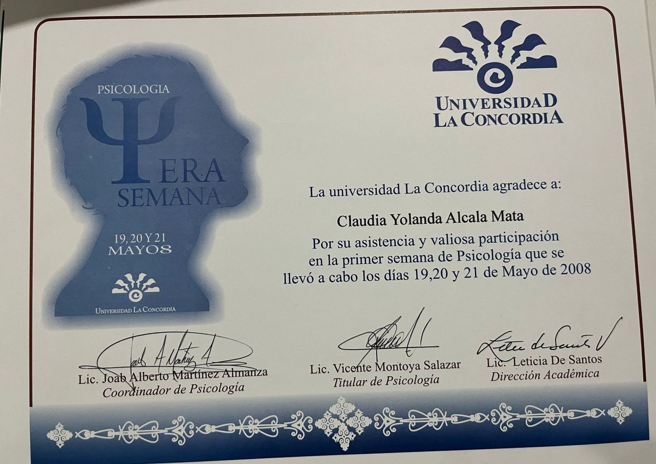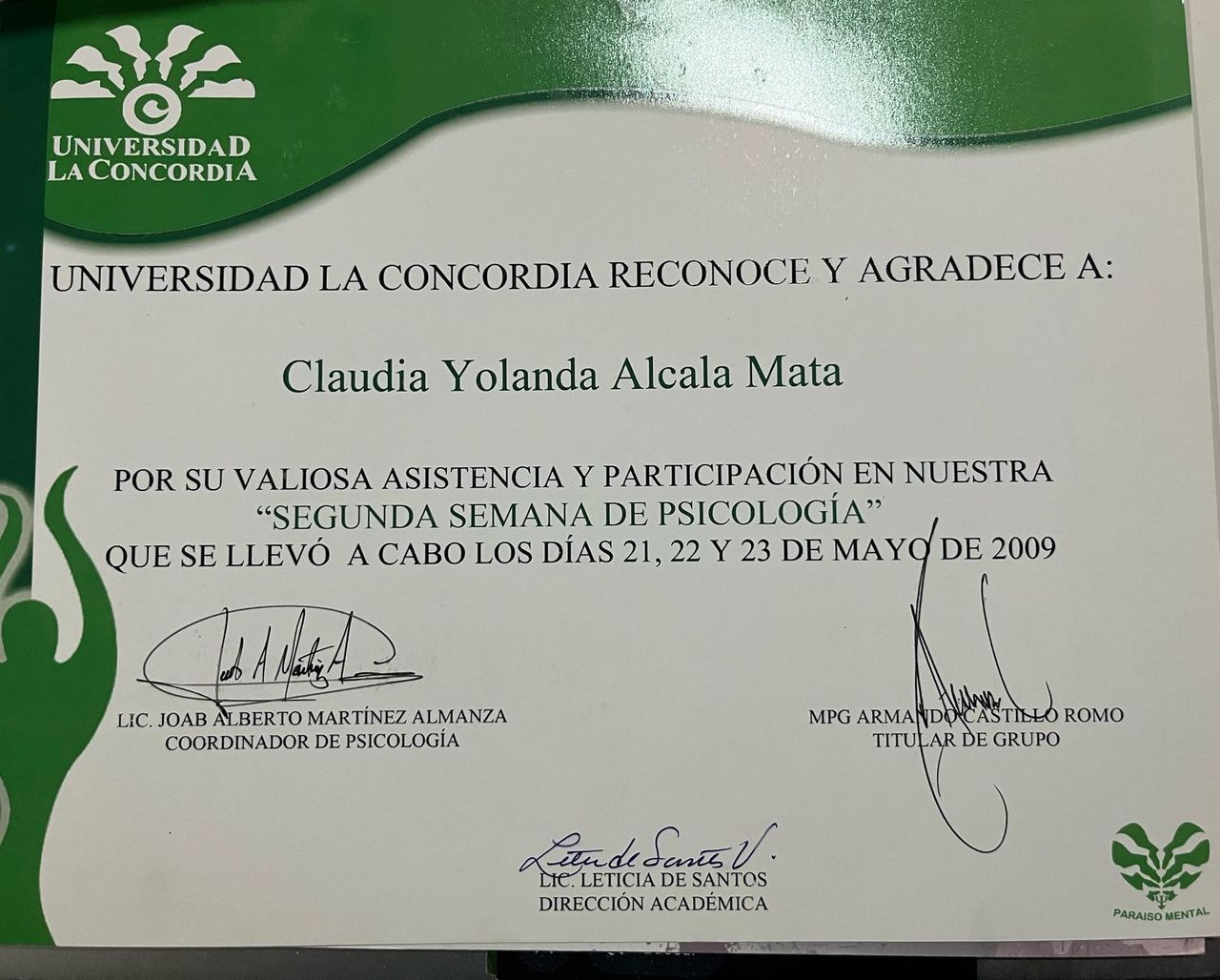 • PSI. CLAUDIA YOLANDA ALCALA MATA • Consulta psicológica presencial •
