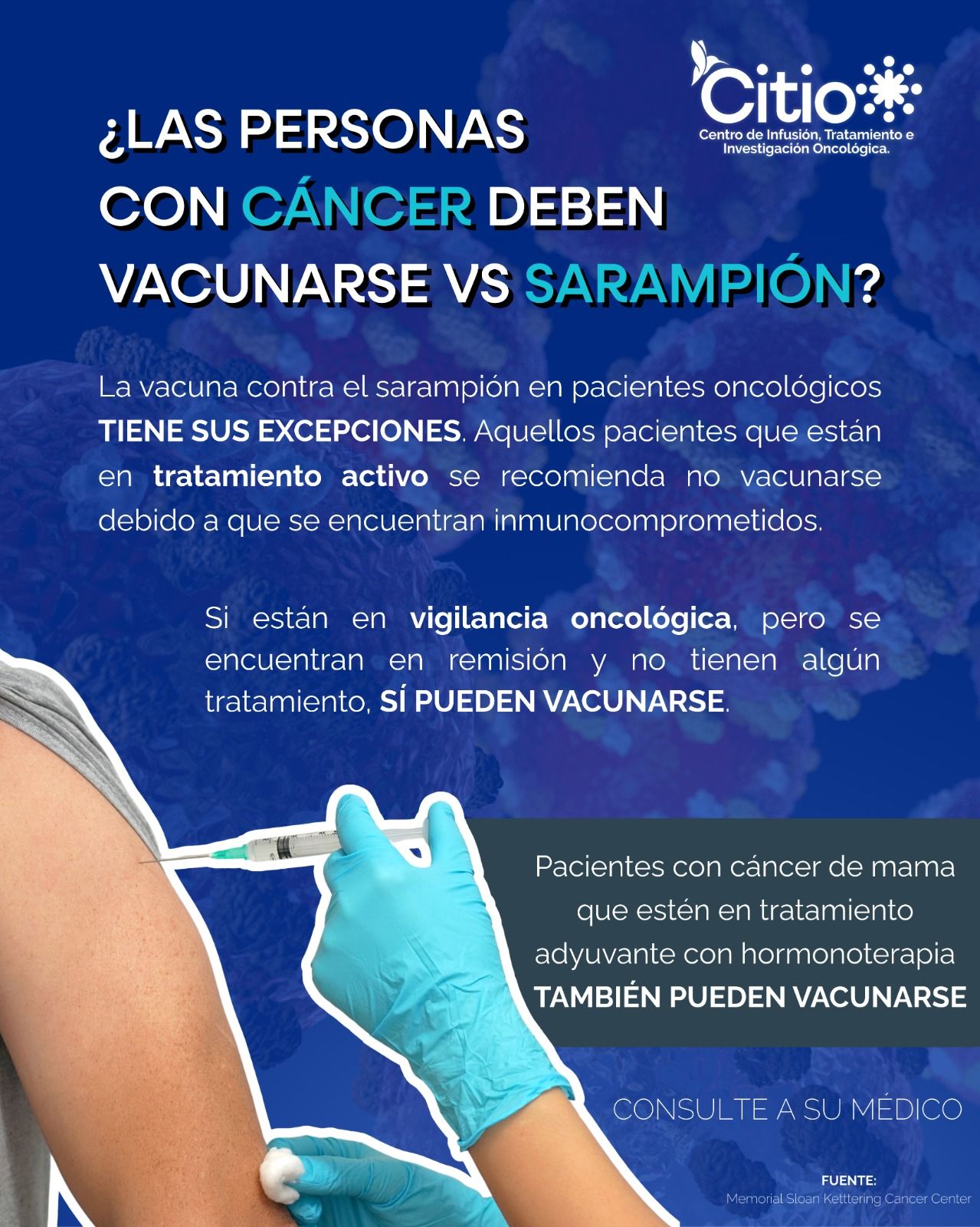 -¿Una persona con cáncer puede vacunarse contra el sarampión?