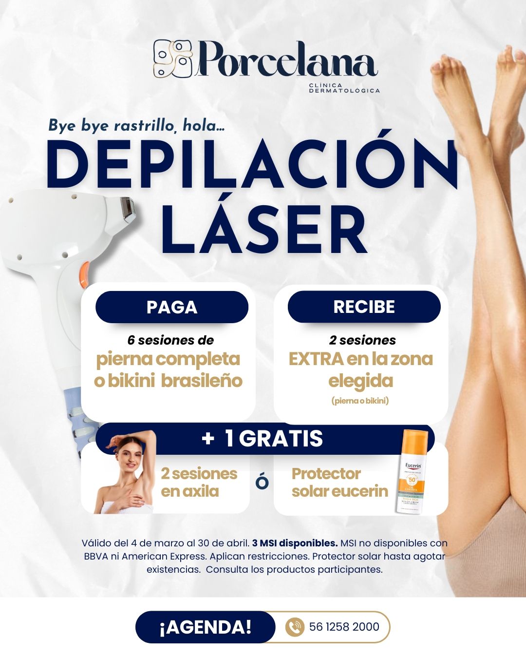 -Paga 6 sesiones de pierna completa o bikini brasileño