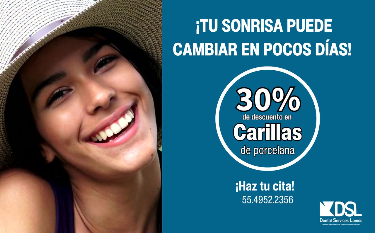 En Dental Services Lomas estamos lanzando una promoción especial: 30% de descuento en carillas de porcelana. Diseñadas para lograr una sonrisa: Más blanca más armónica, más elegante