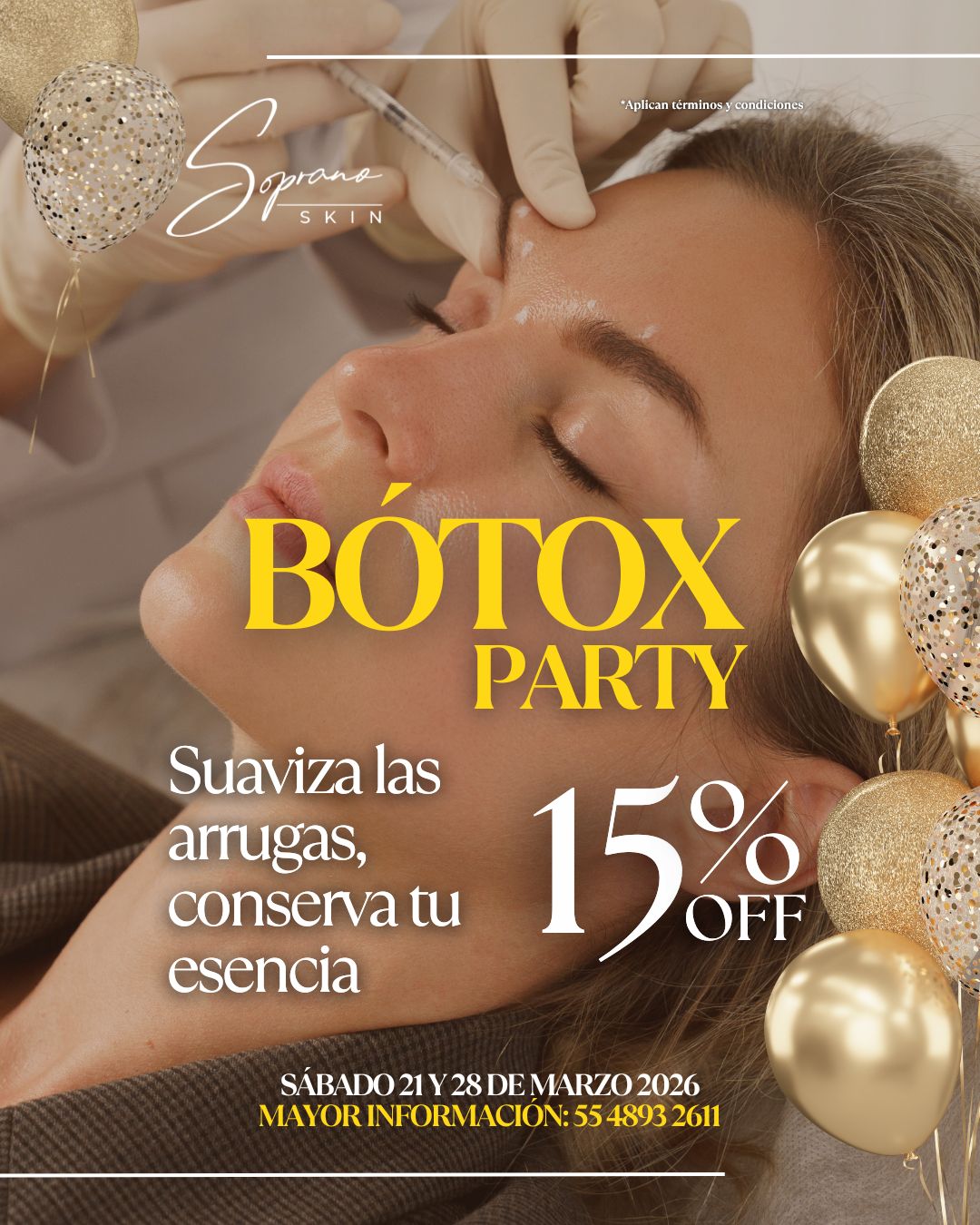 En Soprano Skin te invitamos a nuestra Botox Party, una experiencia especial donde podrás realizar tu tratamiento con 15% de descuento.