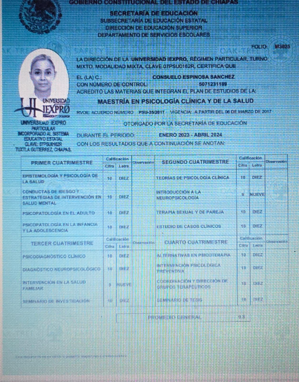 Lic. en Psicología clínica, cuento con 18 años de experiencia en brindar atención en salud mental y adicciones, cuento con la Maestría en Psicología clínica y de la salud (cedula y titulo en trámite), Diplomados: