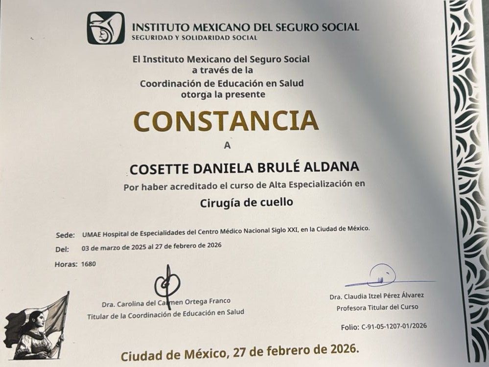Soy Otorrinolaringóloga con dos Altas Especialidades en Laringología/Fonocirugía (enfermedades de la voz) y Cirugía Endocrina de Cuello y Vía Aérea (tiroides, paratiroides y estenosis laringotraqueales).