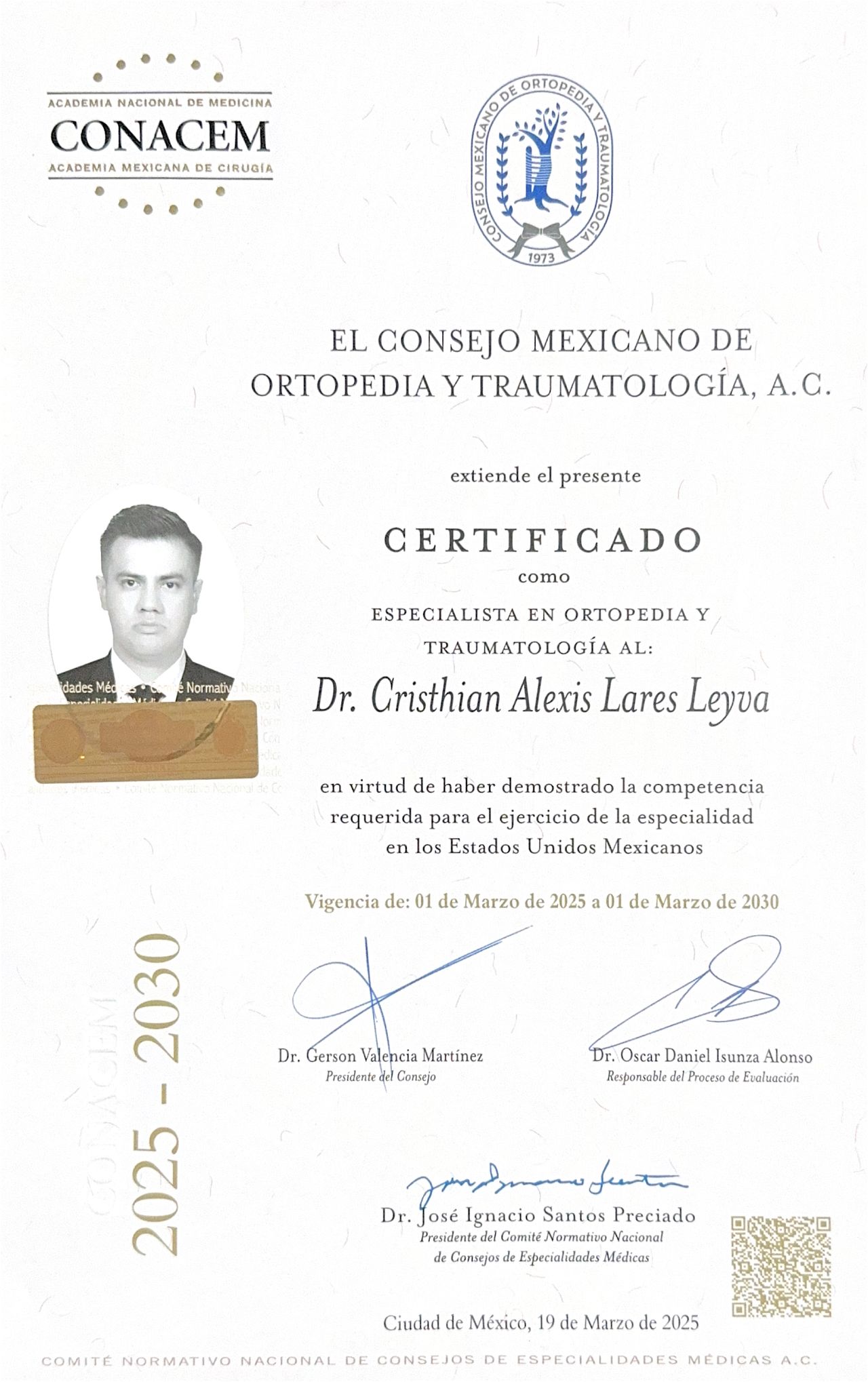 Atención ortopédica de primer nivel. El Dr. Cristhian demuestra amplio conocimiento, habilidad clínica y un trato humano inmejorable. Sin duda, un referente en su especialidad.