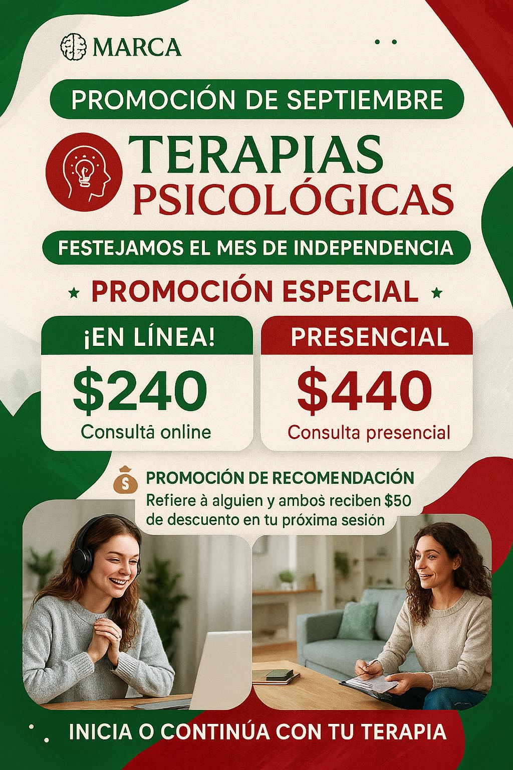 Este mes estoy ofreciendo una promoción especial en terapias psicológicas: