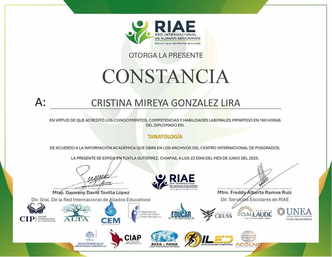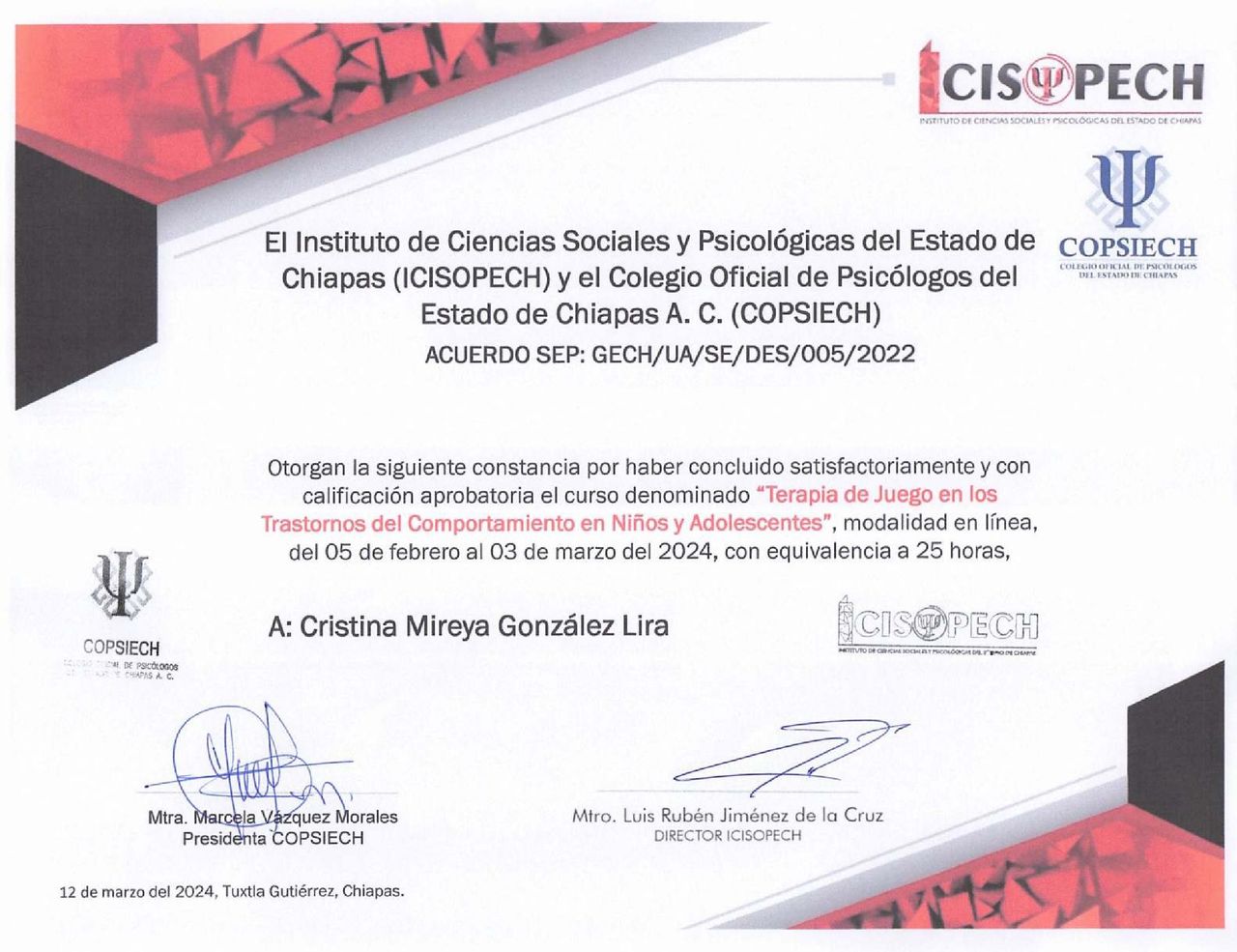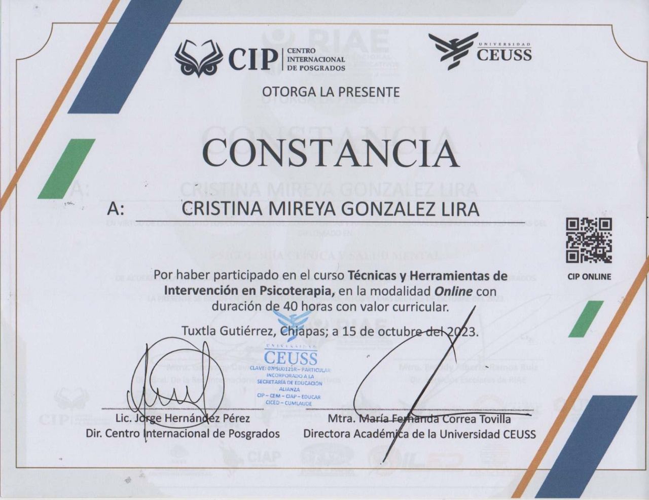 Egresada de la Universidad Nacional Autónoma de México, con 20 años de experiencia en asesoría y orientación psicológica, especialidad con posgrado en psicología clínica y salud mental, técnicas y herramientas de investigación en psicoterapia, diversas actualizaciones en terapia breve. Hipnosis clínica Ericksoniana, Psicodiagnóstico basados en el DSM5-TR Y CIE-11. Terapia del juego en los trastornos del comportamiento en niños y adolescentes, recientemente diplomado en Tanatología, duelo y acompañamiento.