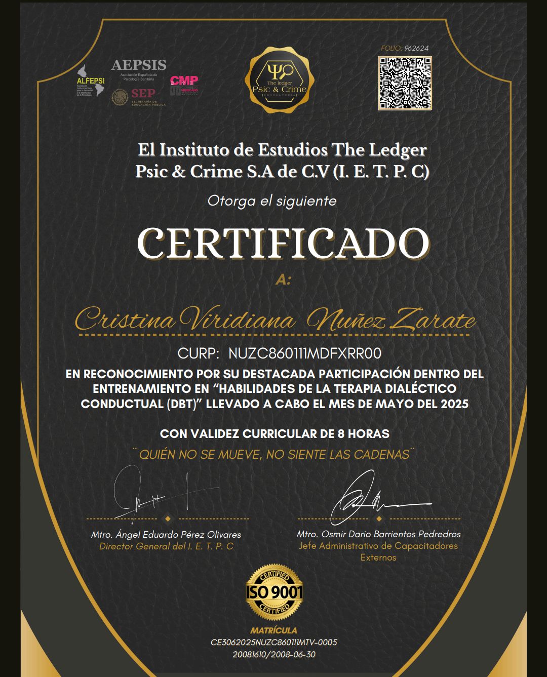 Soy licenciada en Psicología por la Universidad Nacional Autónoma de México (UNAM), con formación en terapia cognitivo conductual, terapia de aceptación y compromiso, y terapia dialéctica conductual.