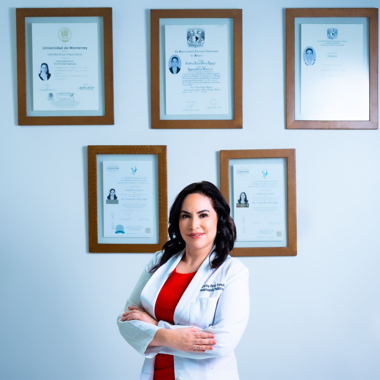 Soy la Dra. Cristina Rocío Pérez Espejo, me entrene en varios de los mejores hospitales de México con médicos altamente reconocidos para poder apoyar a mi gente Chihuahuense con medicina altamente especializada sin tener que salir del estado de Chihuahua. Al acudir a su cita realizare su historial médico, antecedentes personales y familiares, no adentraremos en su enfermedad y realizaremos una exploración física.