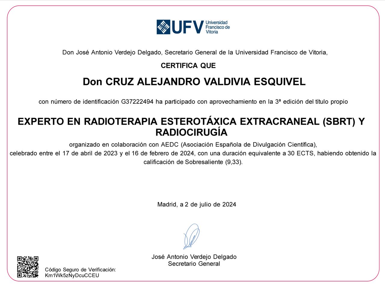 Cruz Alejandro Valdivia Esquivel